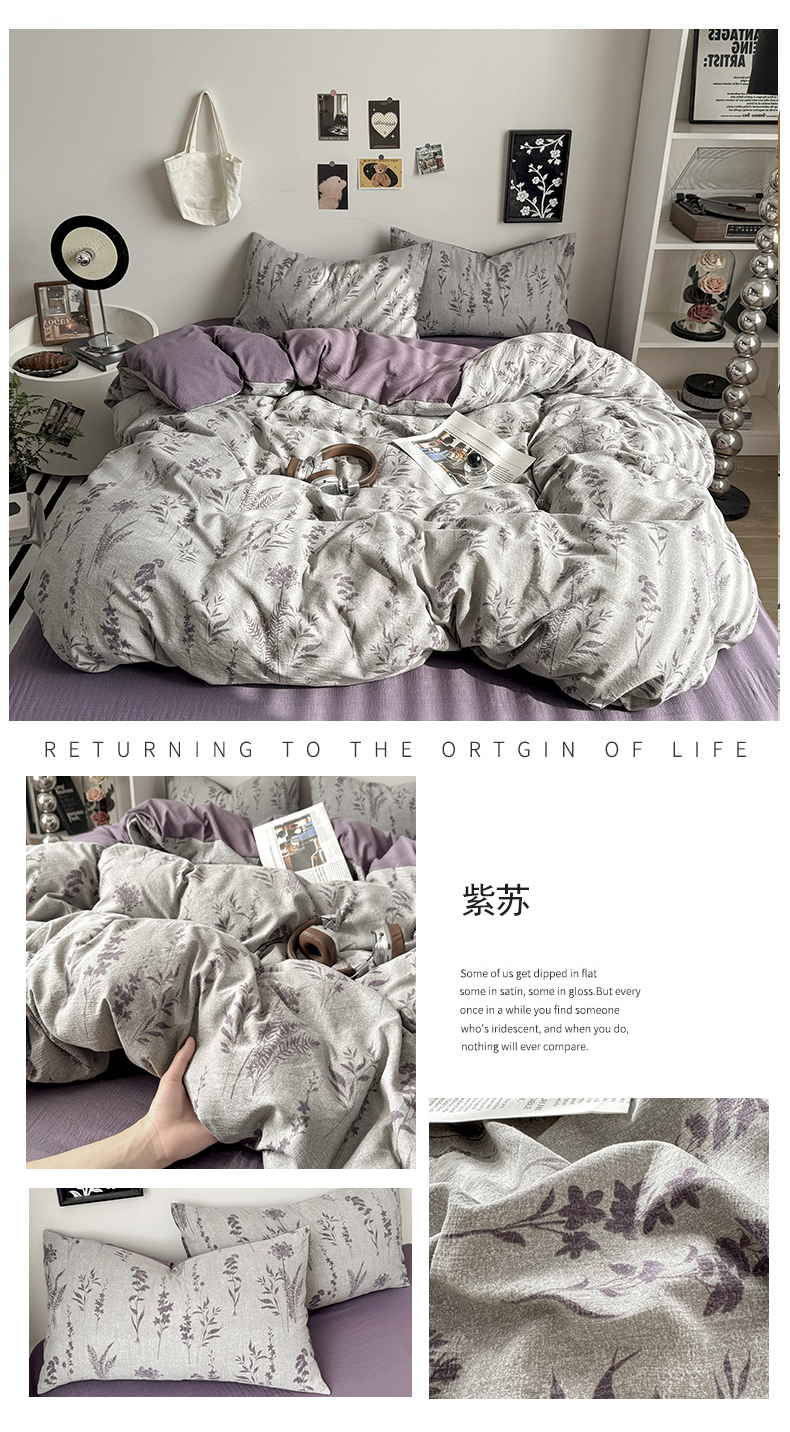 当前位置: 91家纺网 > 商品网购 > 床品套件 > 四件套 > 化纤活性四件套 > 雅阁尔家纺 2026新款轻奢复古美拉德风泡芙棉四件套水洗棉双层纱床单被套学生宿舍三件套床笠款 紫苏