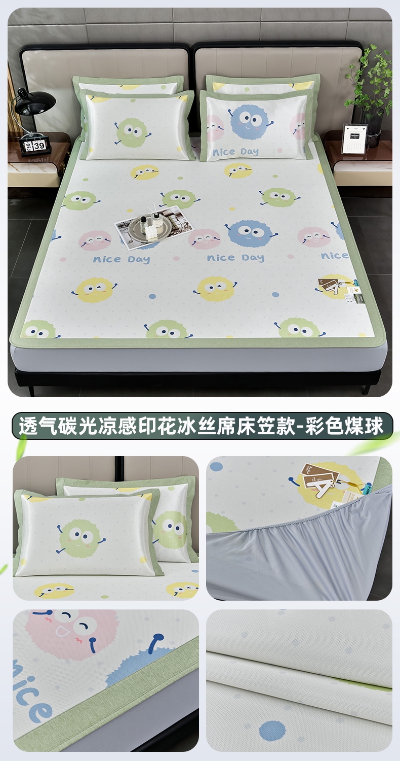 商品名称:小牛席业 2025新款加厚款-碳光凉感冰丝席系列(床笠款)凉席藤席冰藤席冰丝席竹席空调席草席乳胶席凉感豆豆席三 熊猫胖达(床笠款)