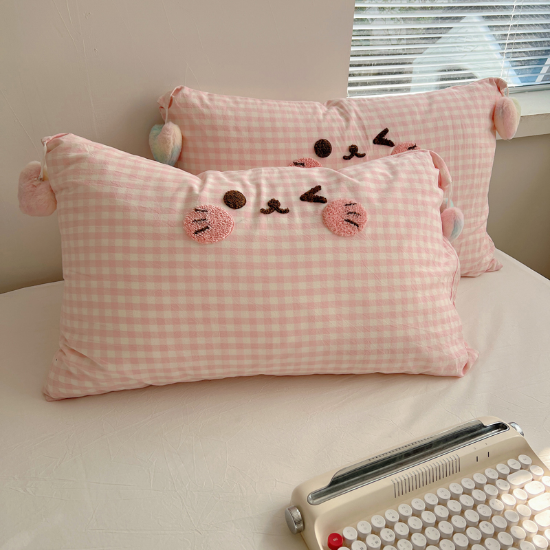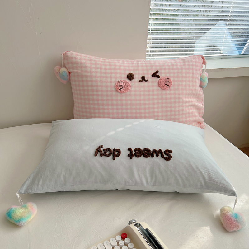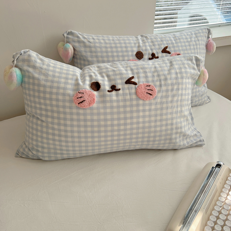 (总)丽涵家纺 2026新款全棉纯棉色织水洗棉单品枕套--爱心兔毛球,笑脸猫咪-粉格,笑脸猫咪-黄格,笑脸猫咪-蓝格,笑脸猫咪-紫格,蝴蝶结-奶黄,甜蜜一天-粉,甜蜜一天-蓝,甜蜜一天-奶黄