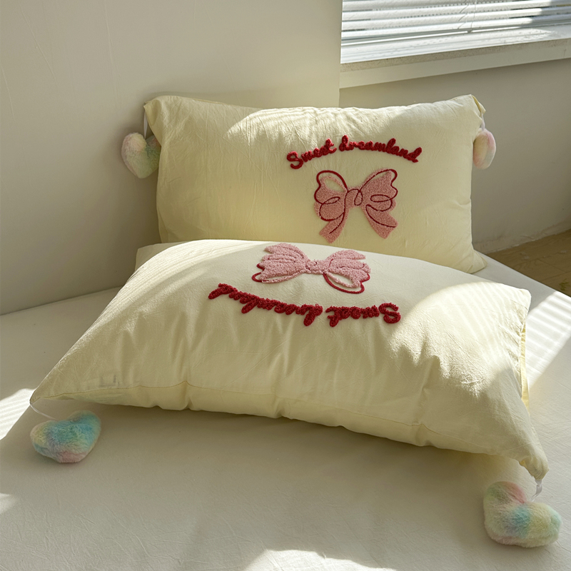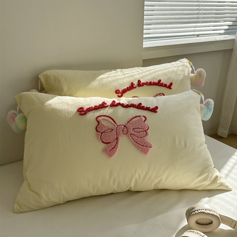商品名称:丽涵家纺 2026新款全棉纯棉色织水洗棉单品枕套--爱心兔毛球 甜蜜一天-粉