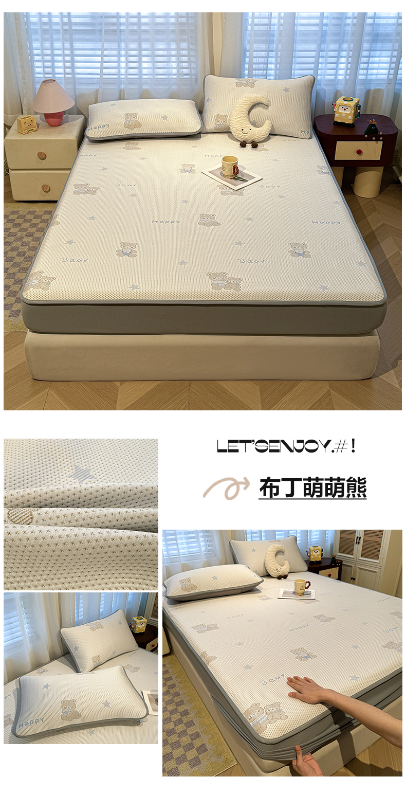 (总)凯罗 2026新款可水洗凉豆豆夏季席子凉席三件套,Hello--熊,爱心小熊--浅粉,敦敦熊--浅粉,敦敦熊--蓝灰,爱心小熊-咖,花儿朵朵--浅粉