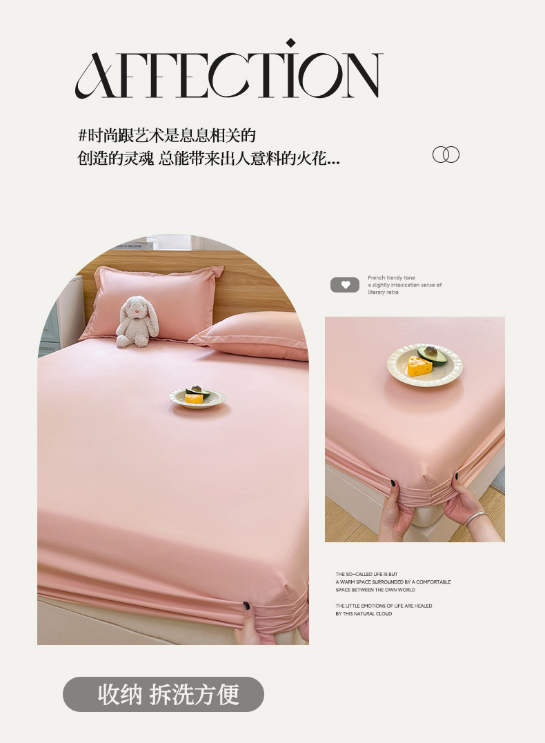 • 91家纺网 家纺一手货源 找家纺 默忆 2026新款针织双层纱印花糯小棉床笠 西瓜粉