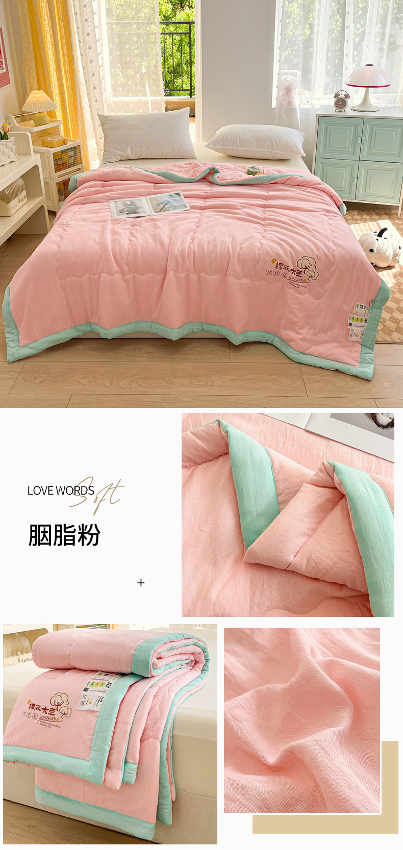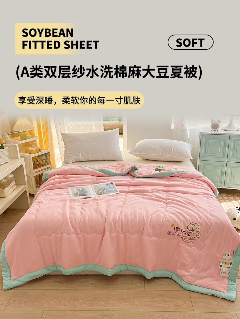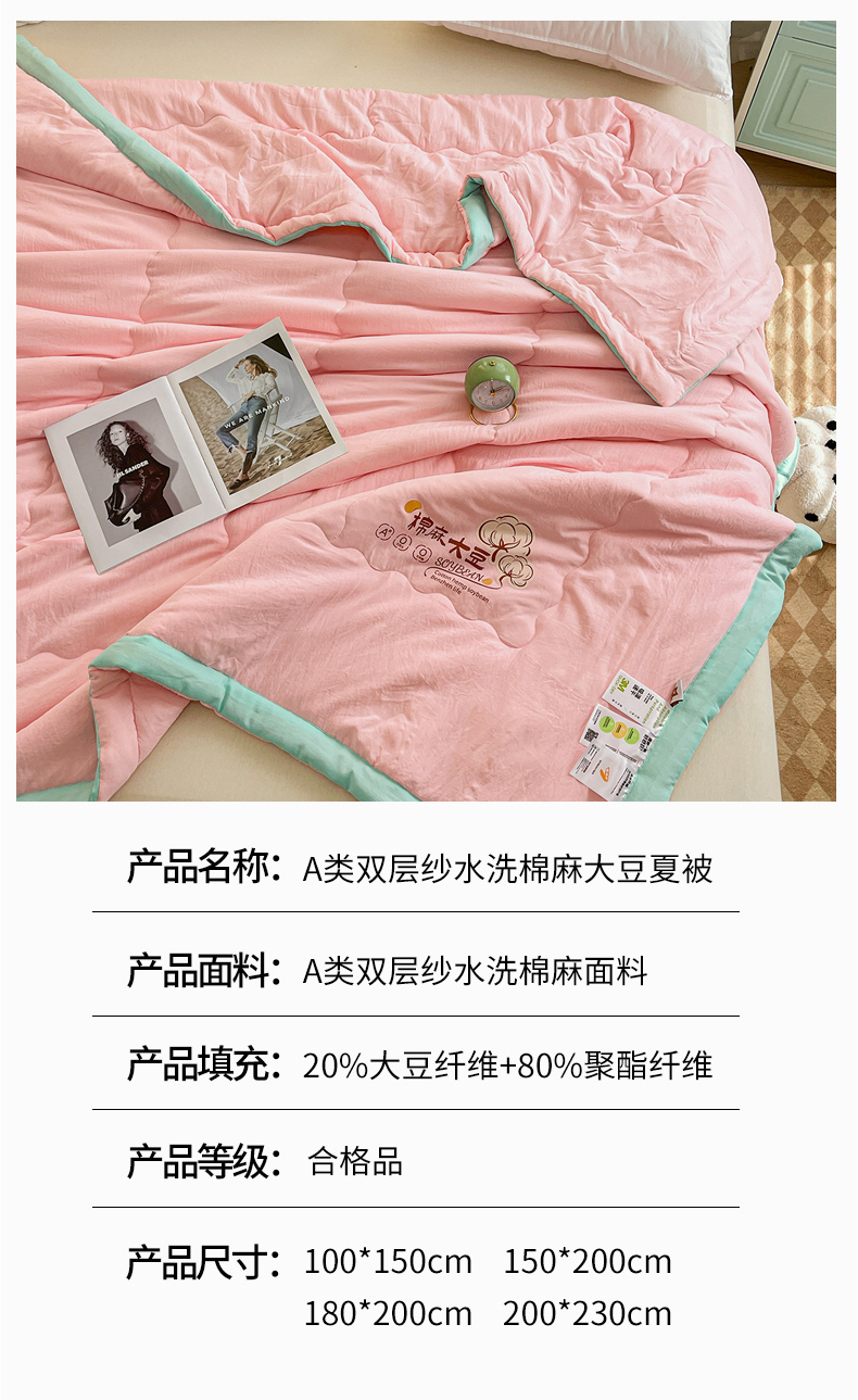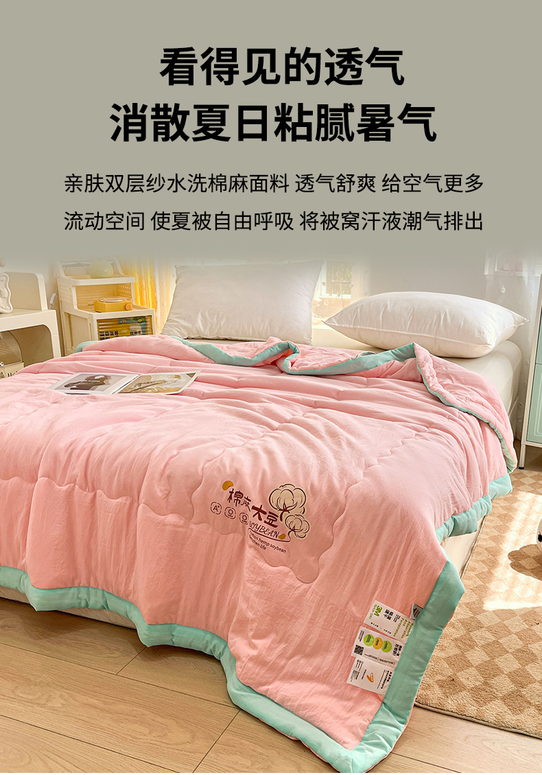 商品名称:默忆 2026新款A类双层纱水洗棉麻大豆夏被被子被芯 胭脂粉