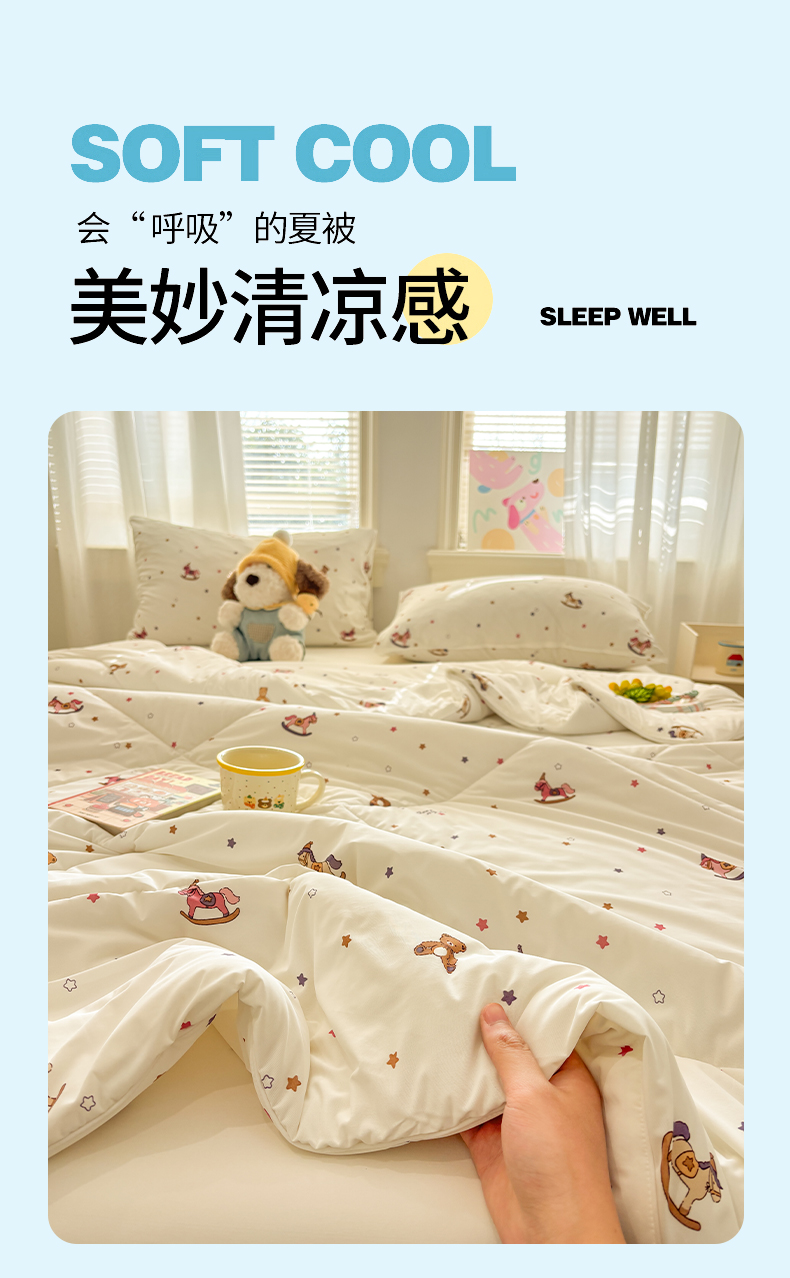 商品名称:益多眠 【同款超低价】2026新款锦氨夏凉被凉感丝夏被空调被单人夏被自带凉感冰丝夏被【四周踩棉】 小木马