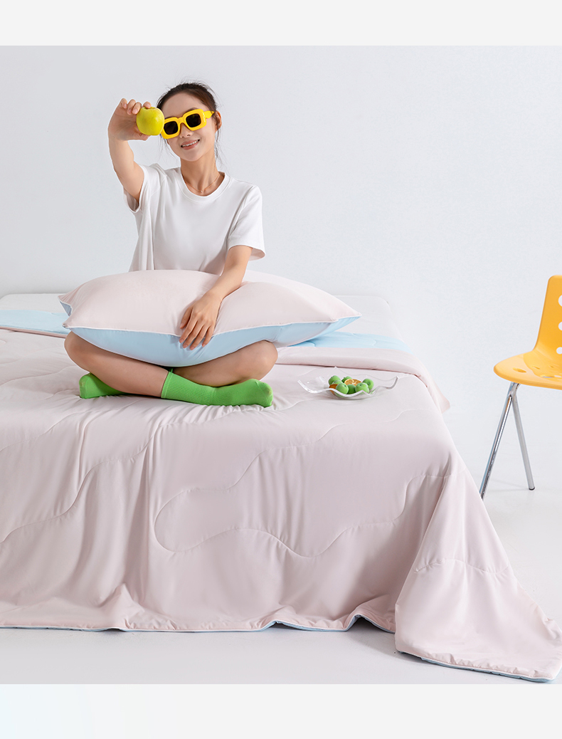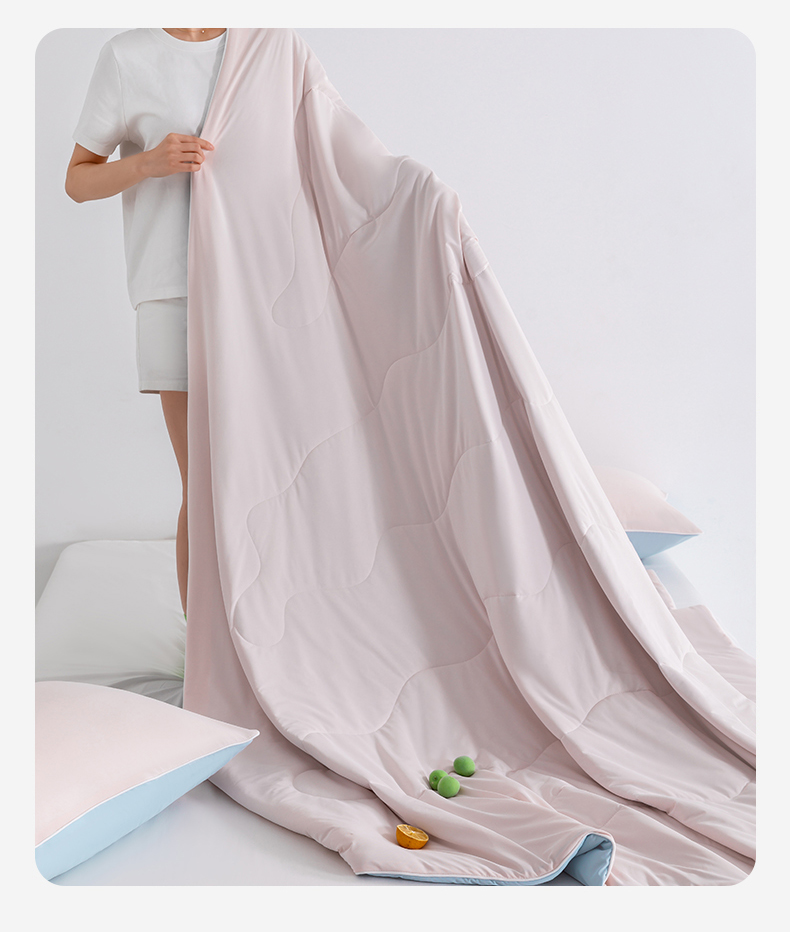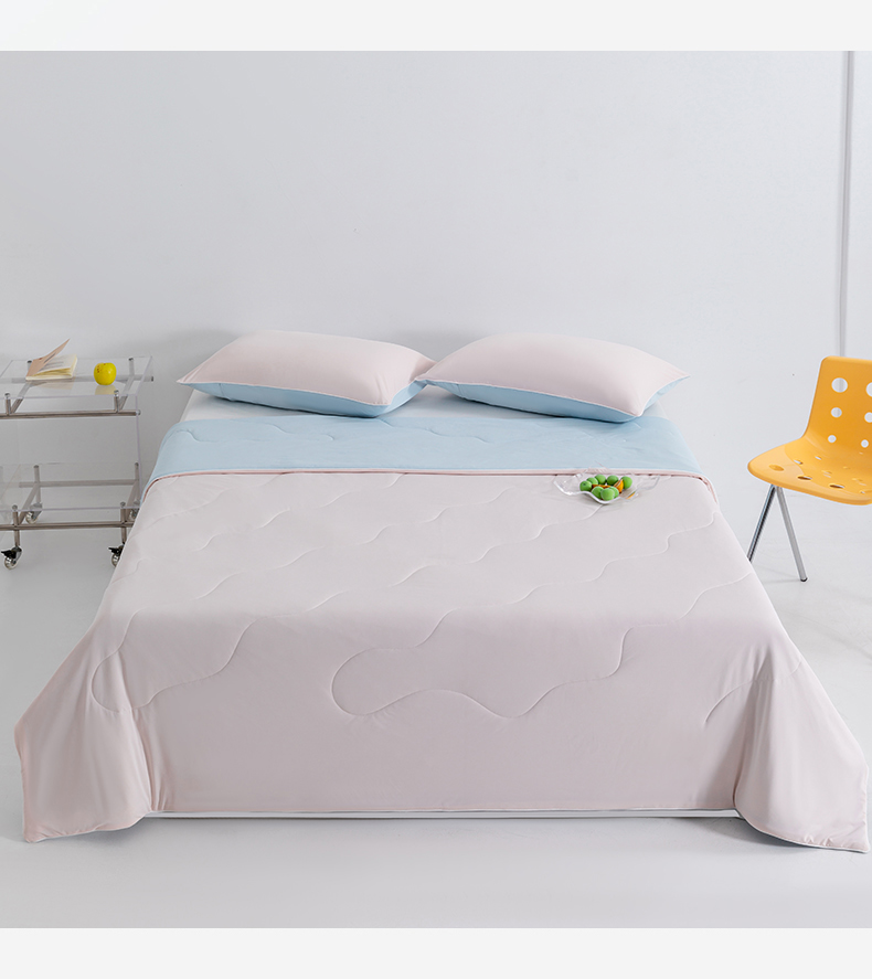 商品名称:梵心家纺 2026新款凉感A类氨纶凉感丝夏被(10%氨纶)空调被大豆夏凉被 冰莓粉+浅蓝
