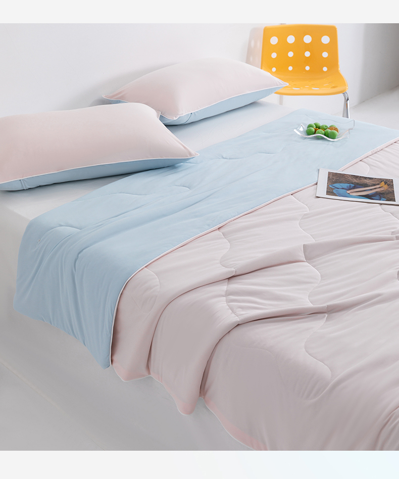 梵心家纺 2026新款凉感A类氨纶凉感丝夏被(10%氨纶)空调被大豆夏凉被 冰莓粉+浅蓝