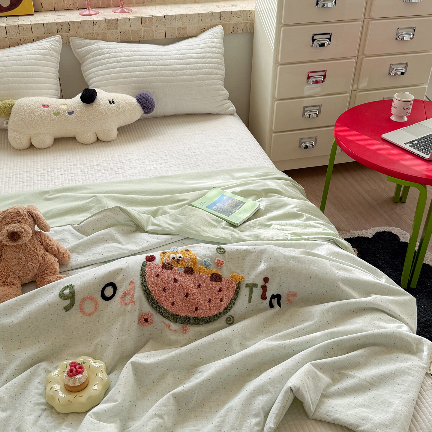 (总)有货 2026新款棉麻提花印花毛巾绣夏被春秋被被子被芯-甜趣,草莓兔,橘子卡比,蓝莓马,柠檬熊,青苹果熊,西瓜猫,香蕉猫,樱桃娃娃,组合