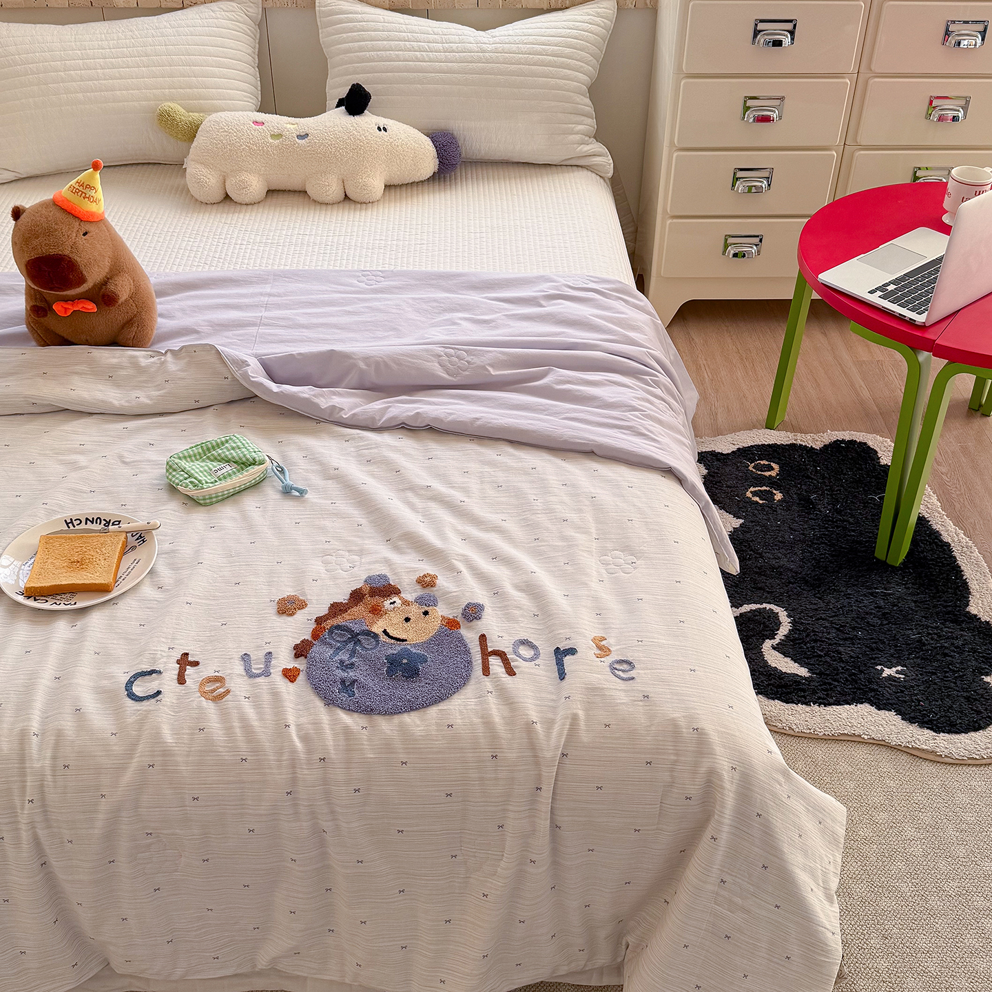 (总)有货 2026新款全棉双层纱毛巾绣夏被春秋被被子被芯-森林萌宠,大耳粉兔,佛系水豚,狐小狸,马小帅,森林精灵,香蕉贝贝,组合