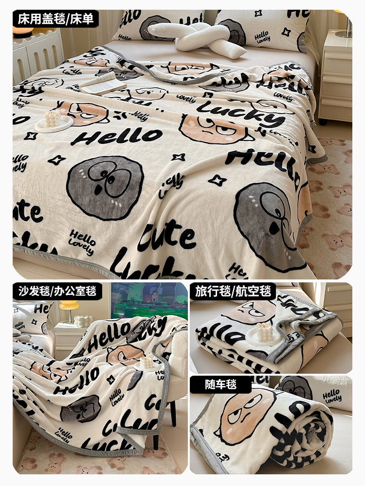 (总)宅部落 2026新款亲肤舒适牛奶绒印花毛毯毯子300克云貂绒盖毯毯子,愤怒的小煤球,黑白熊猫,快乐小汪汪,幸运之花,郁金香小免,卡皮巴拉,酷喵,熊的脚印,腊肠狗,休闲喵喵