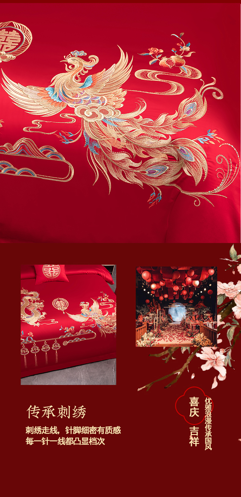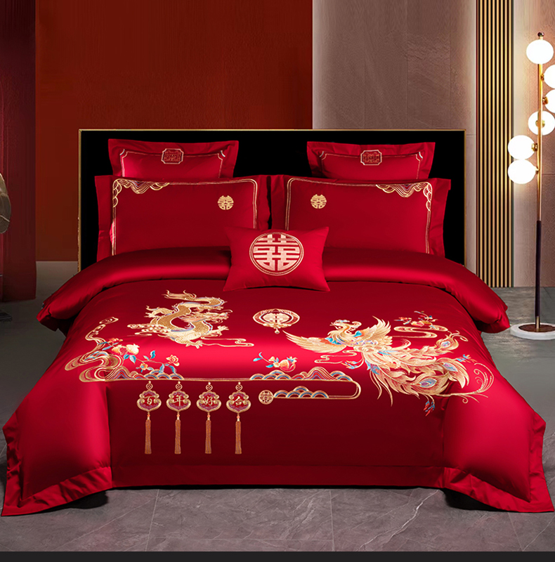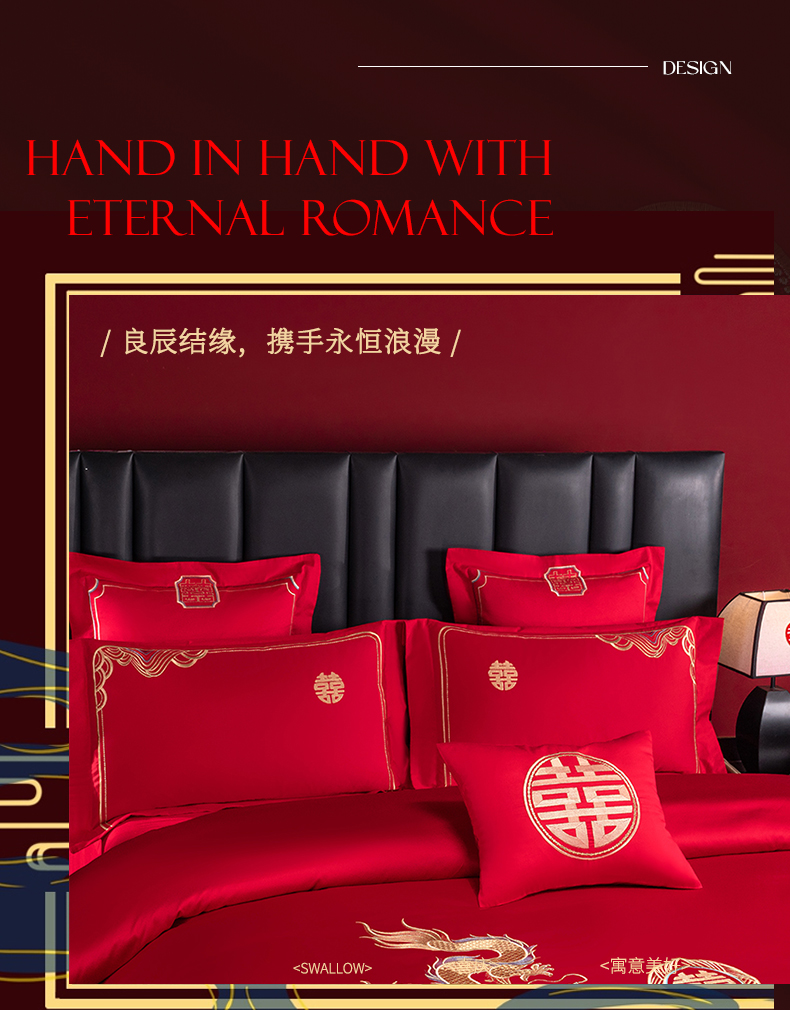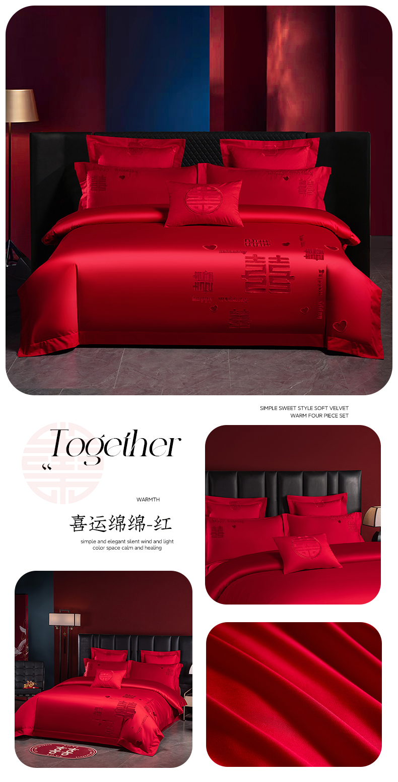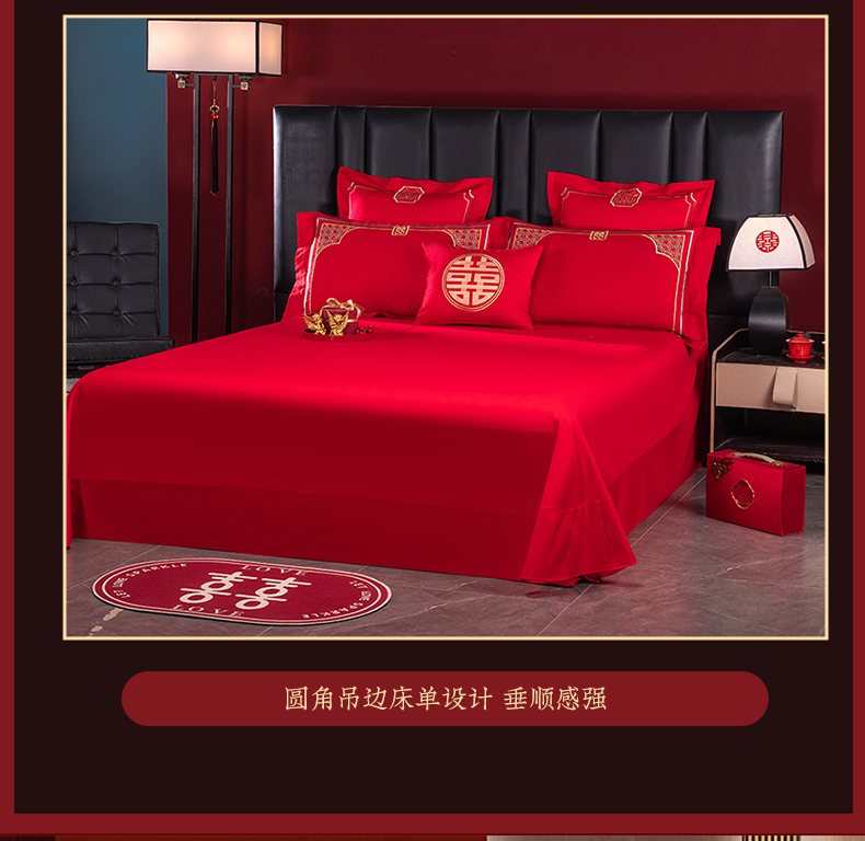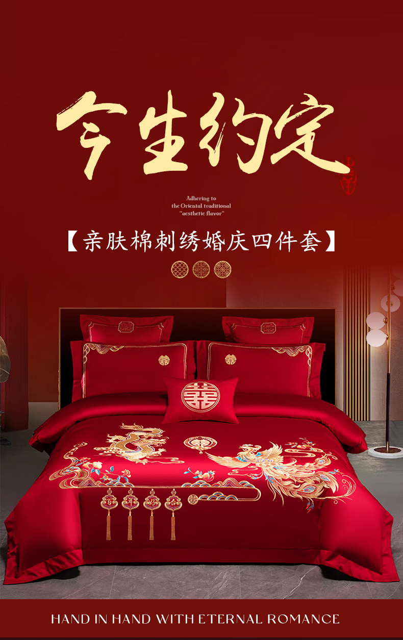 当前位置: 91家纺网 > 商品网购 > 床品套件 > 四件套 > 婚庆四件套 > 博之洋婚庆 2026新款新中式亲肤棉婚庆大红刺绣系列四件套 今生约定