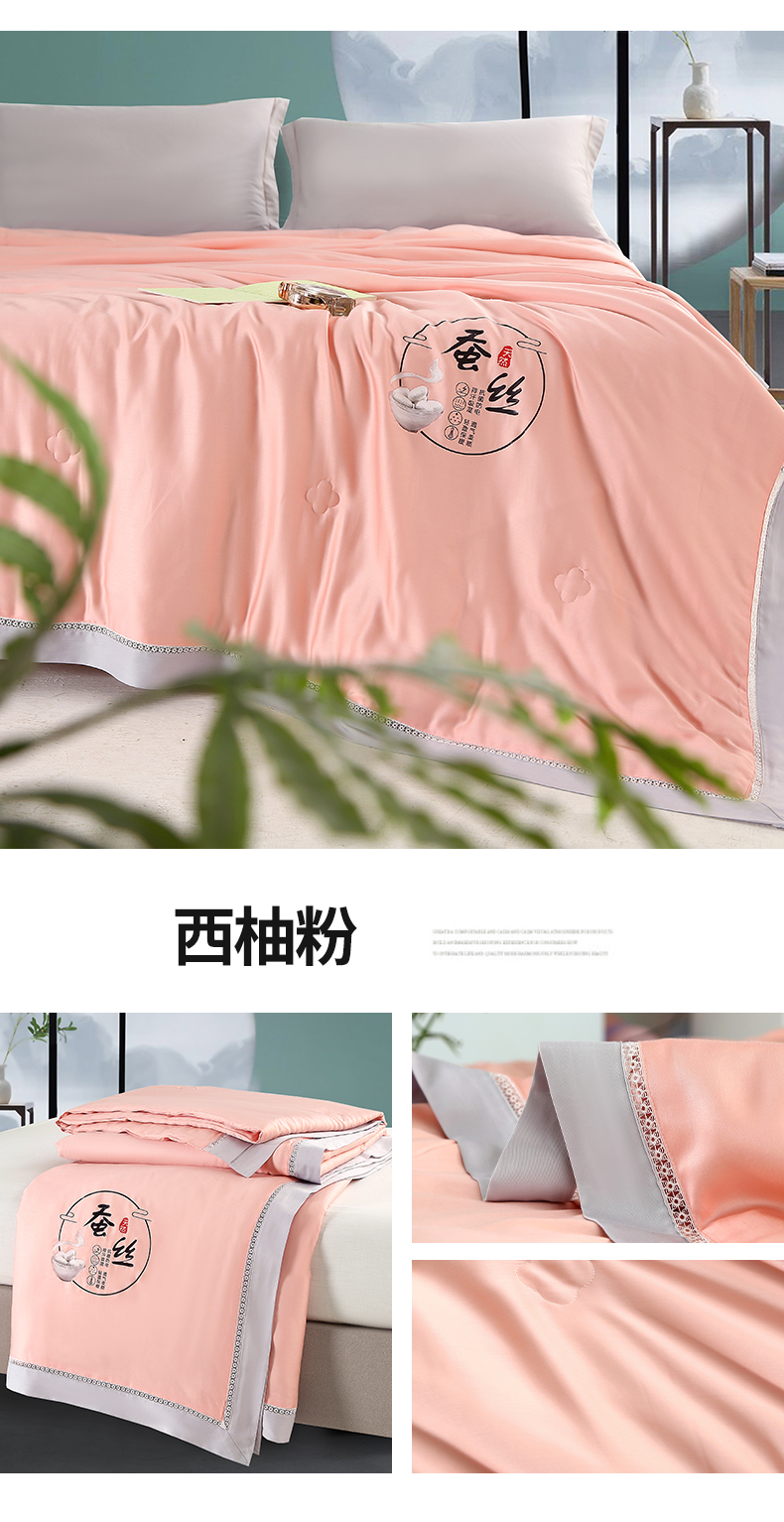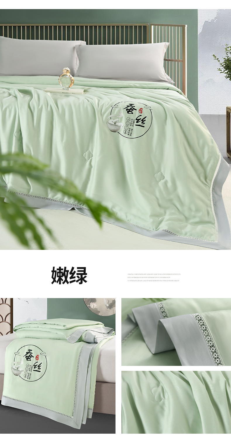 (总)薇玛仕 2026新款绣花80支兰精天丝可水洗蚕丝被100蚕丝填充夏凉被空调被,碧空蓝,春色绿,静谧紫,倩影粉,清雅灰,香槟咖