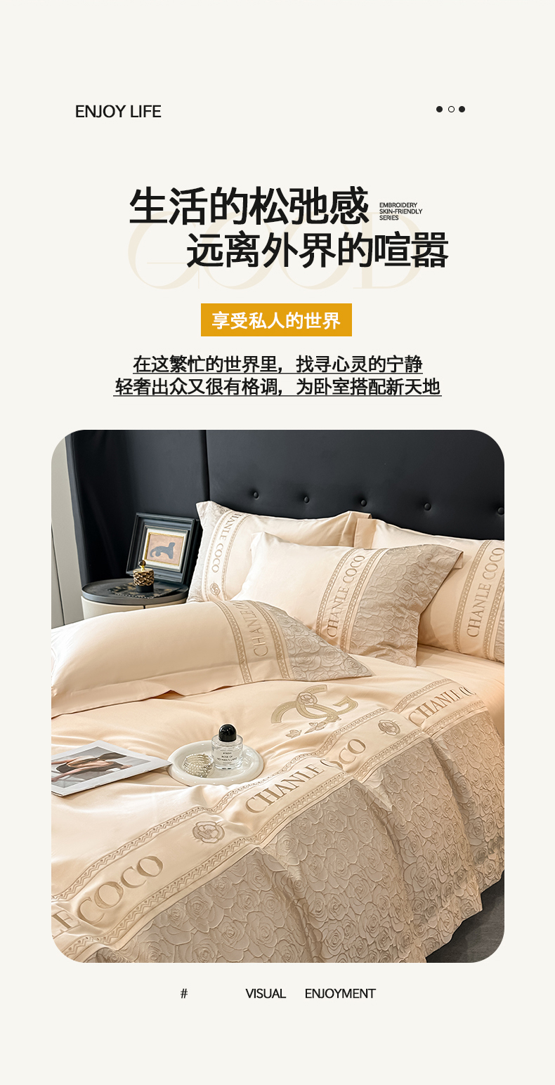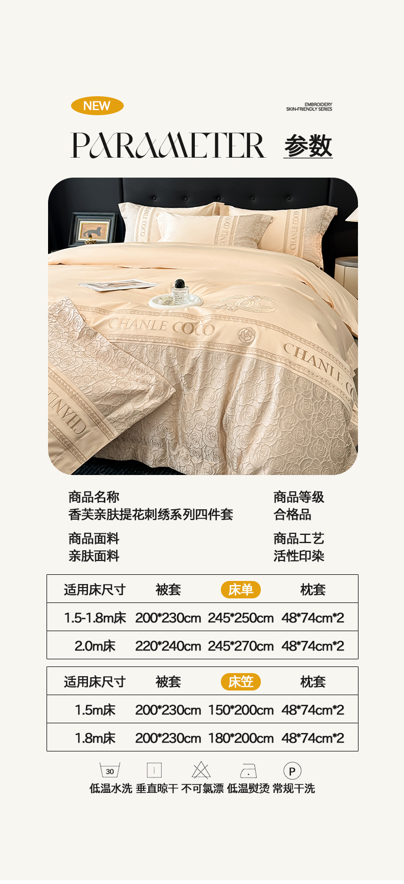 当前位置: 91家纺网 > 商品网购 > 床品套件 > 四件套 > 其它四件套 > 置顶家纺 2026新款香芙亲肤提花刺绣四件套 香芙-浅香槟