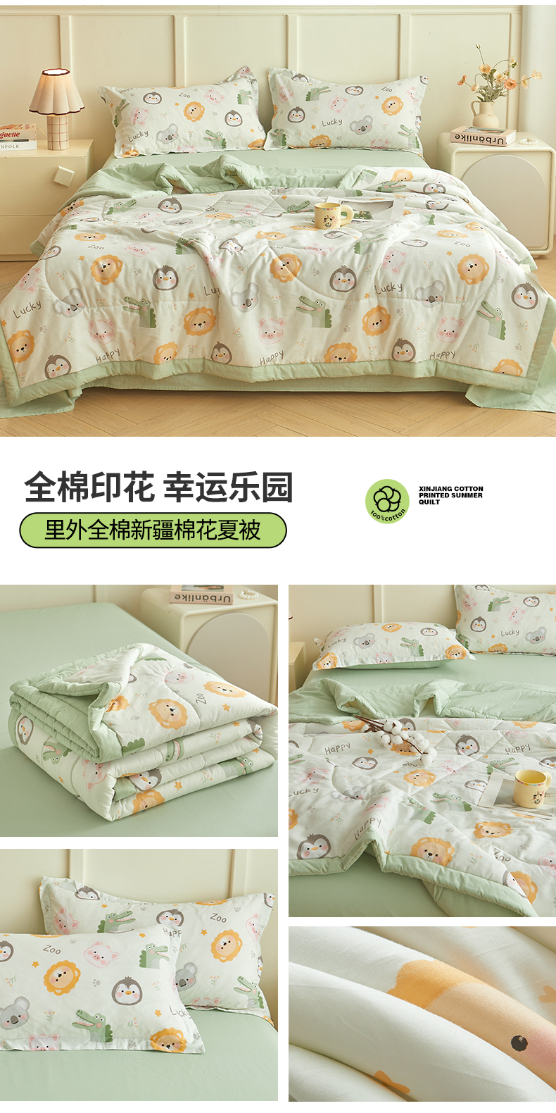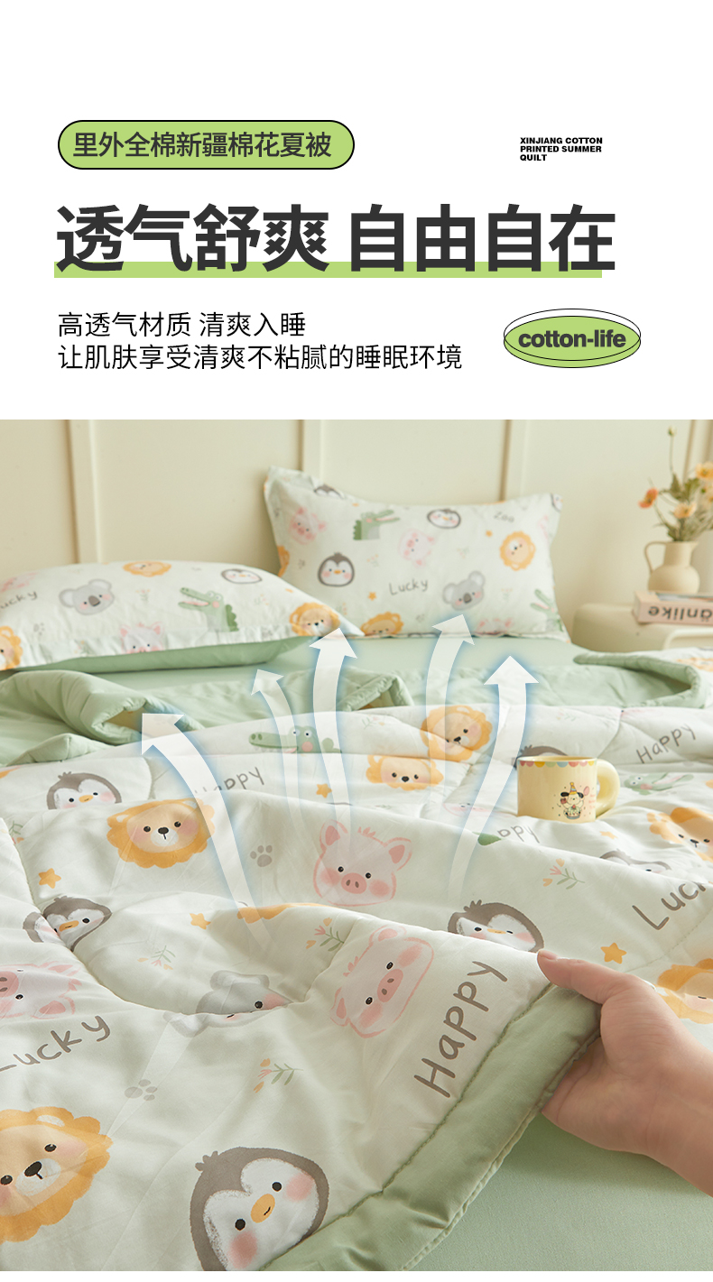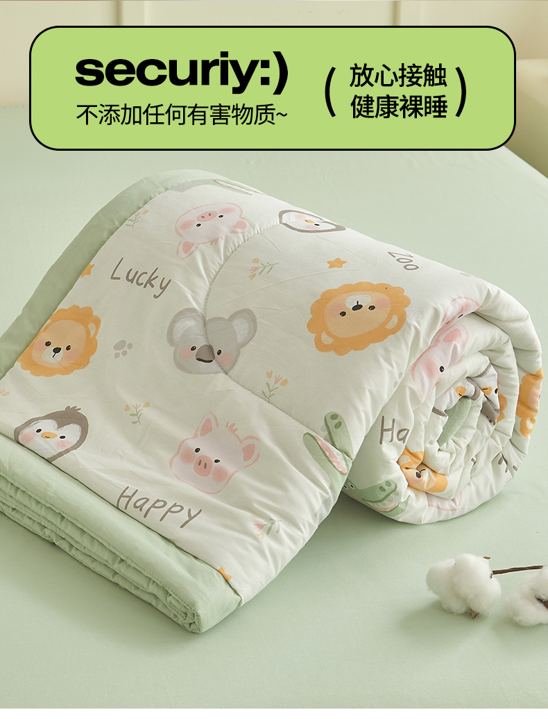商品名称:西域种棉人·千百笠 2026新款A类里外全棉12868夏凉被100%新疆棉纯棉全棉填充印花款空调被夏被 全棉印花 幸运乐园