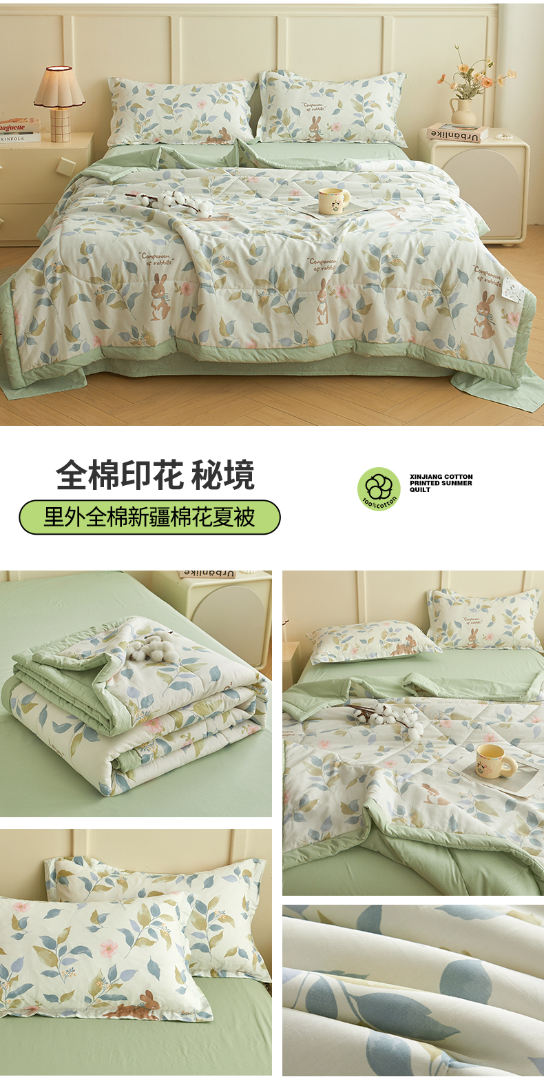 西域种棉人·千百笠 2026新款A类里外全棉12868夏凉被100%新疆棉纯棉全棉填充印花款空调被夏被 全棉印花 幸运乐园
