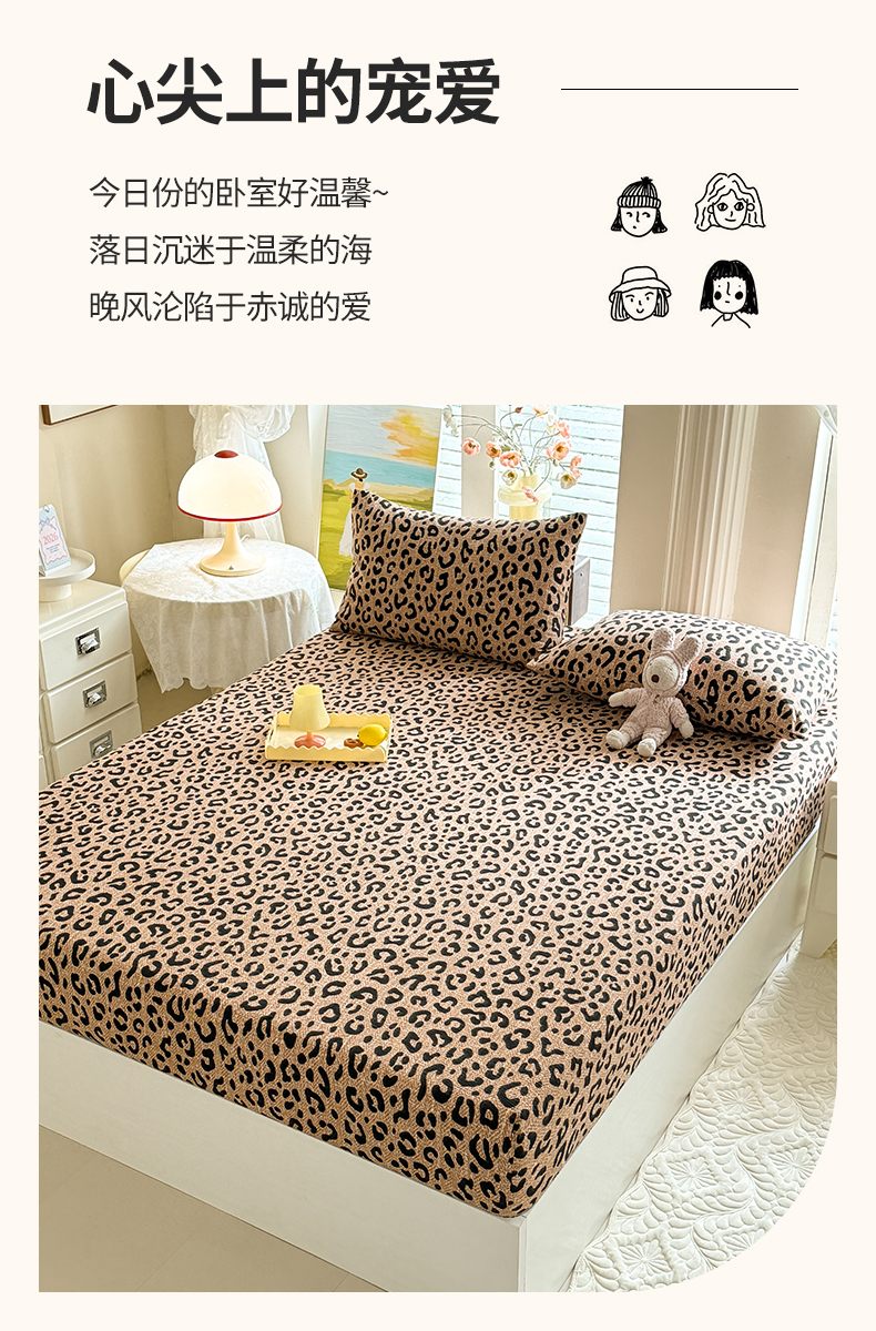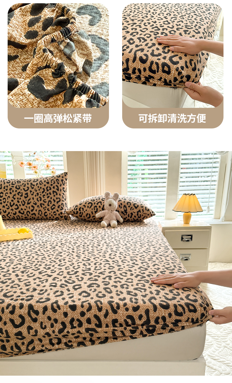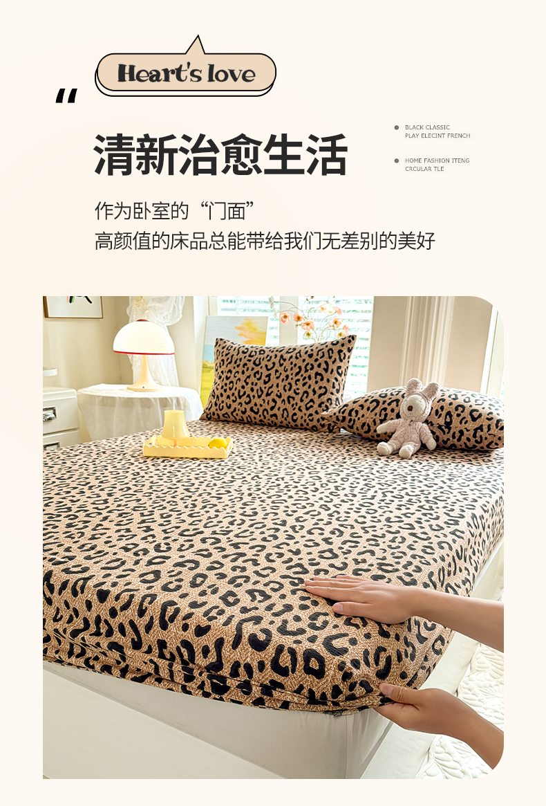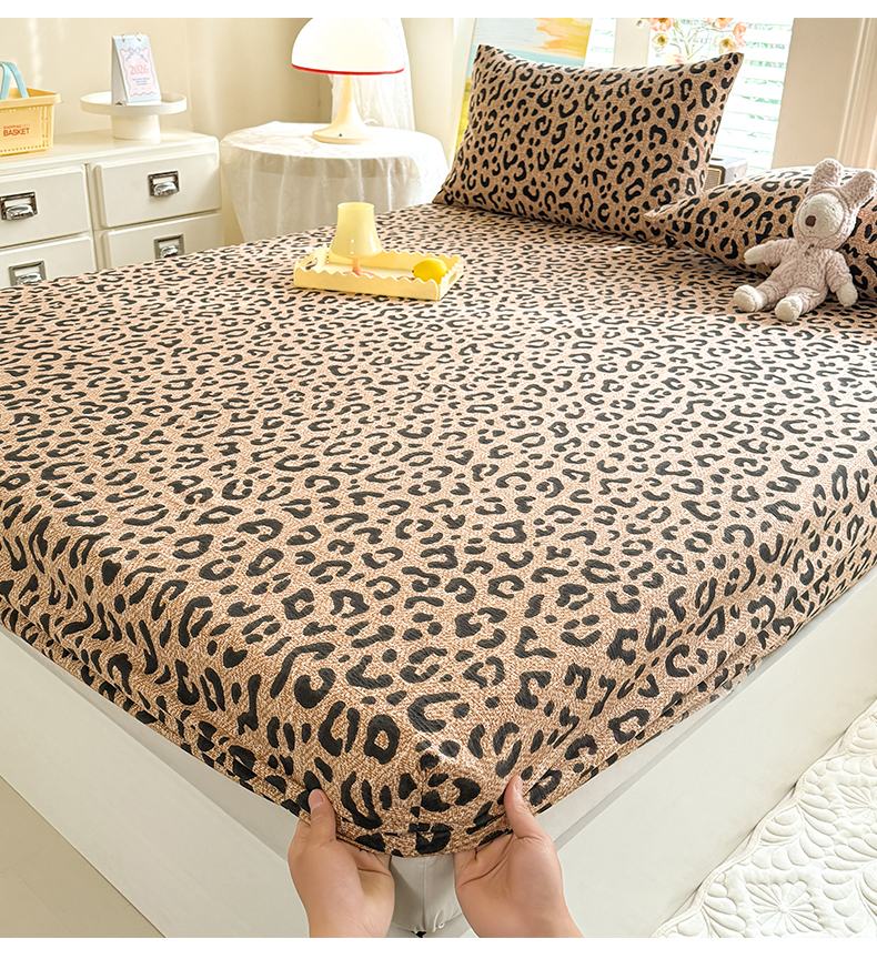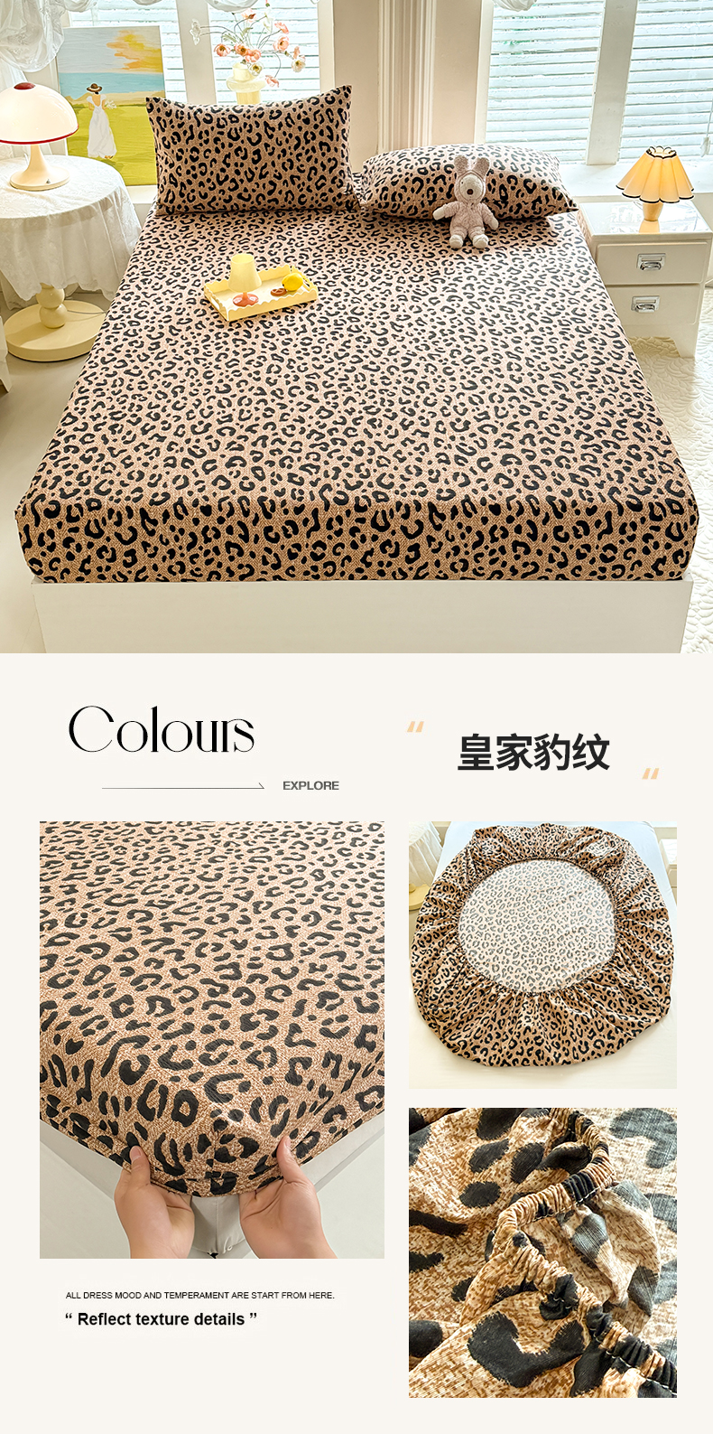 • 91家纺网 家纺一手货源 找家纺 九诺家纺 2026春夏新款丝柔棉小清新单床笠床罩保护套床笠单件床笠三件套 皇家豹纹