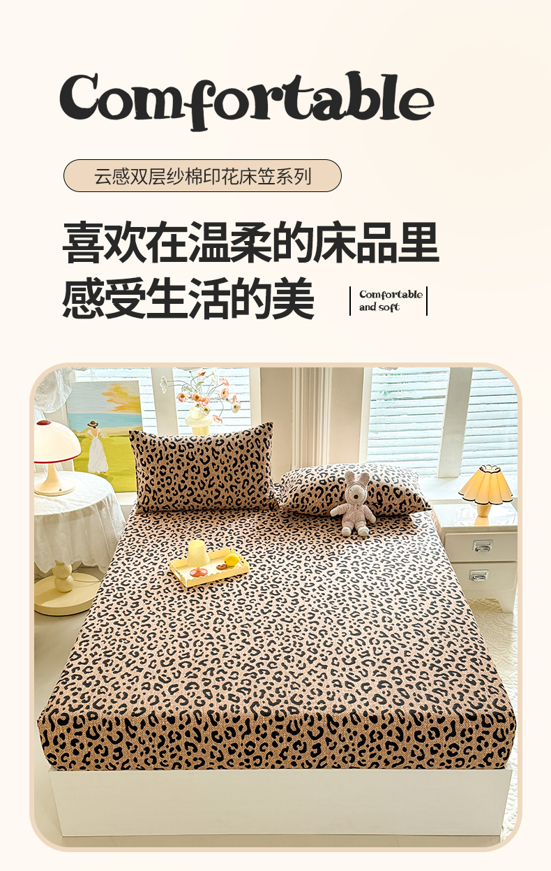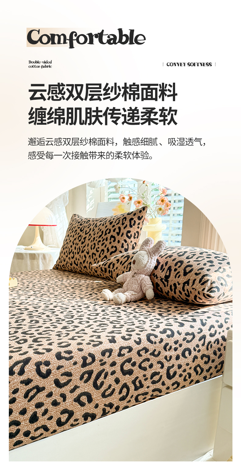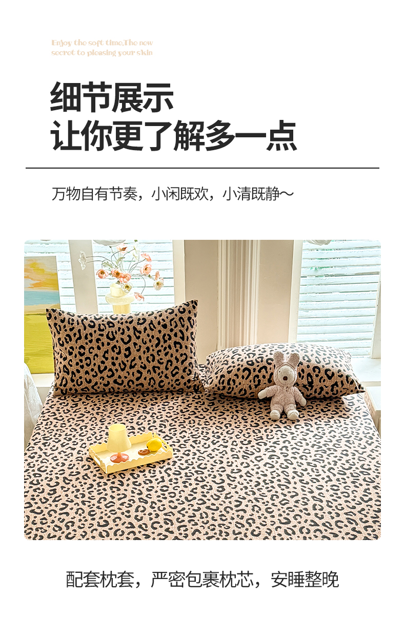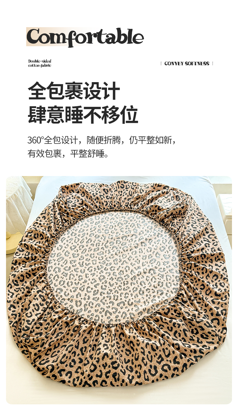 • 91家纺网 家纺一手货源 找家纺 九诺家纺 2026春夏新款丝柔棉小清新单床笠床罩保护套床笠单件床笠三件套 皇家豹纹