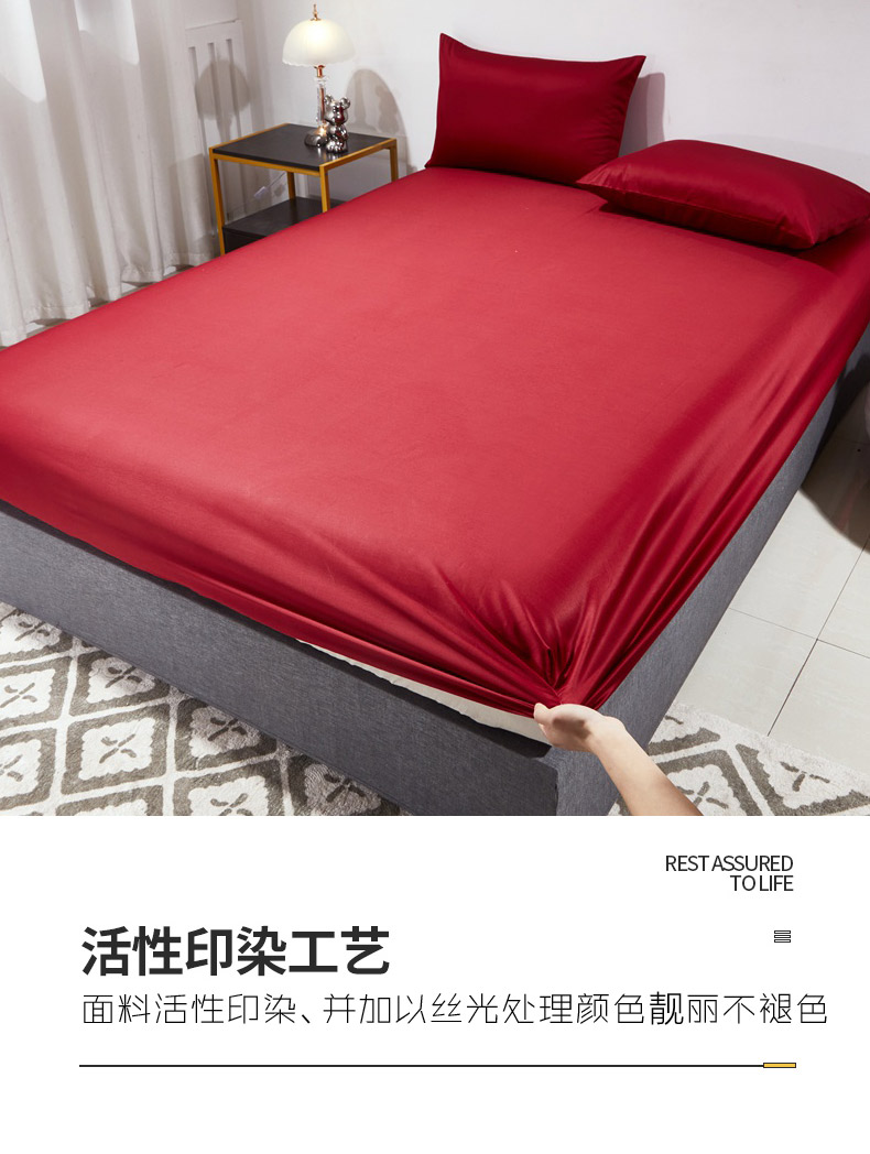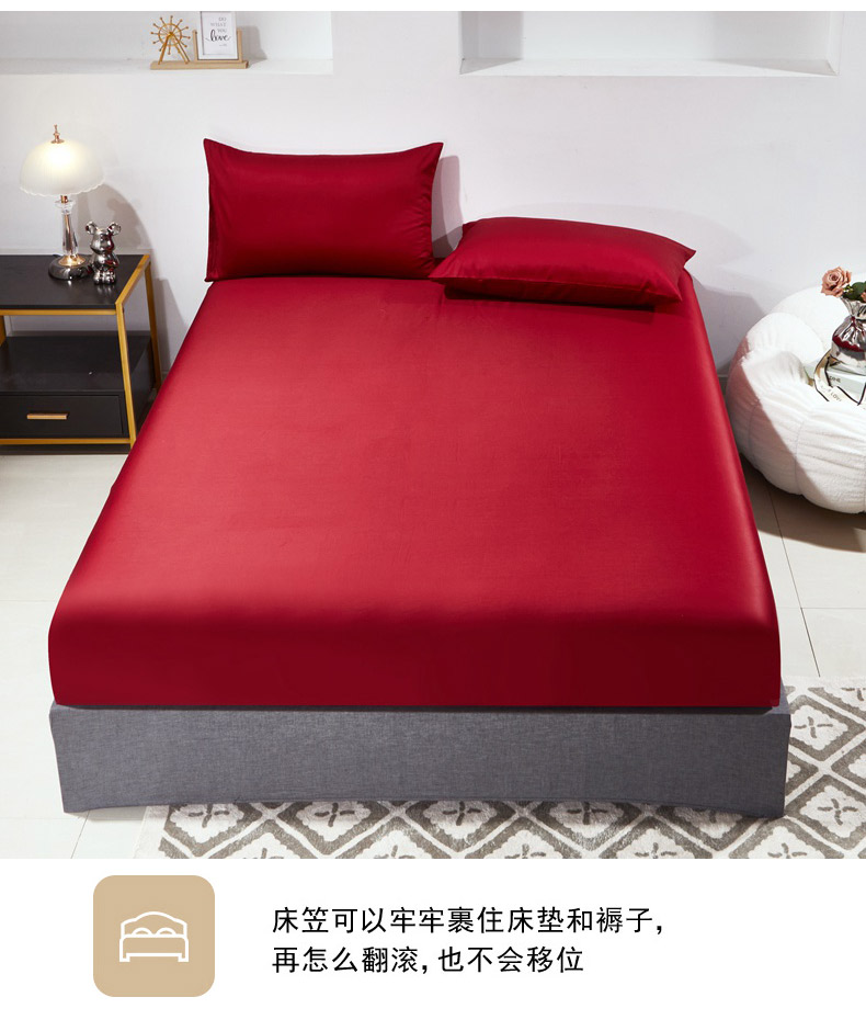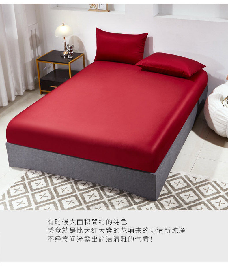 晶缦家纺 2026新款全棉A类纯棉60支贡缎长绒棉纯色单床笠单品床笠床笠单件 琳琅-酒红色