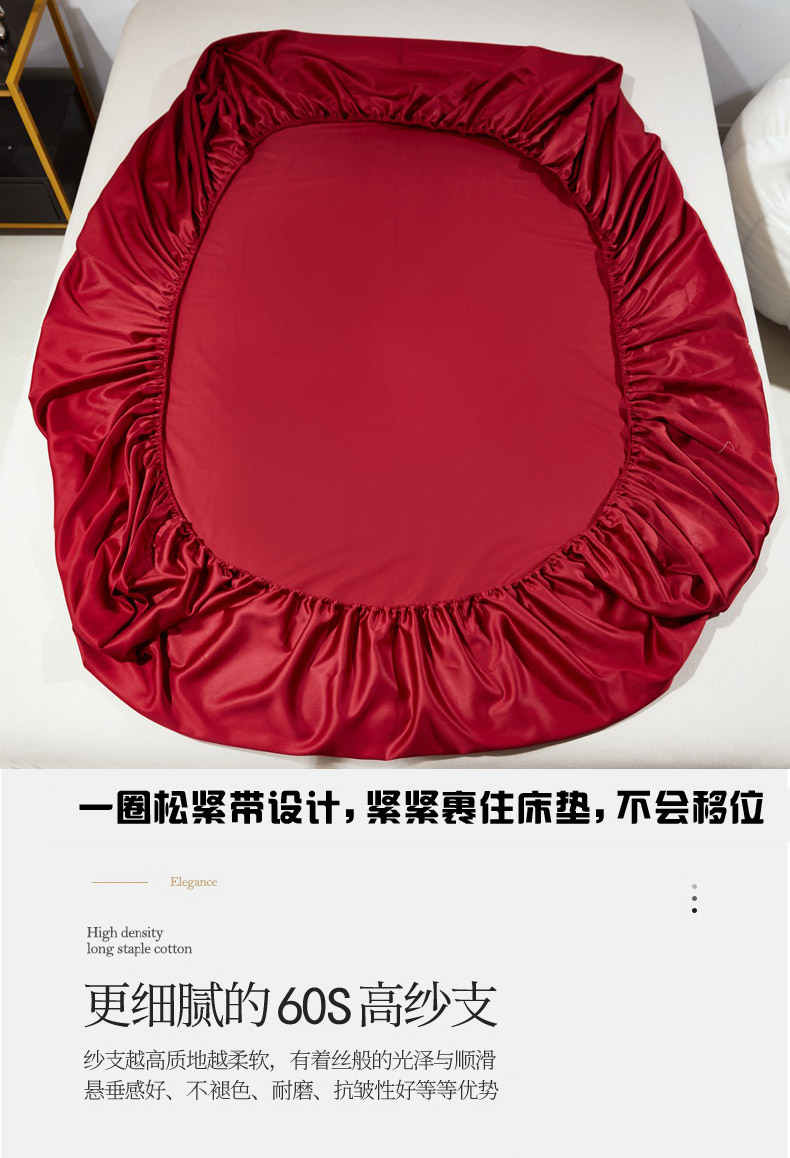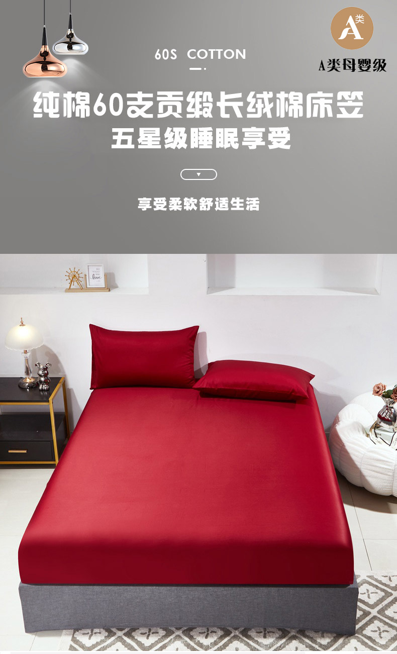 • 91家纺网 家纺一手货源 找家纺 晶缦家纺 2026新款全棉A类纯棉60支贡缎长绒棉纯色单床笠单品床笠床笠单件 琳琅-酒红色