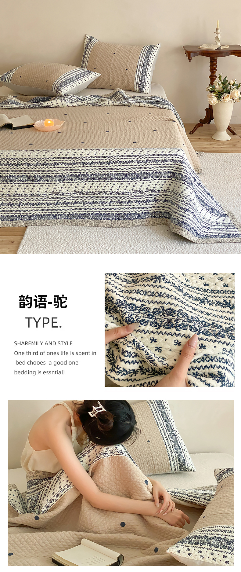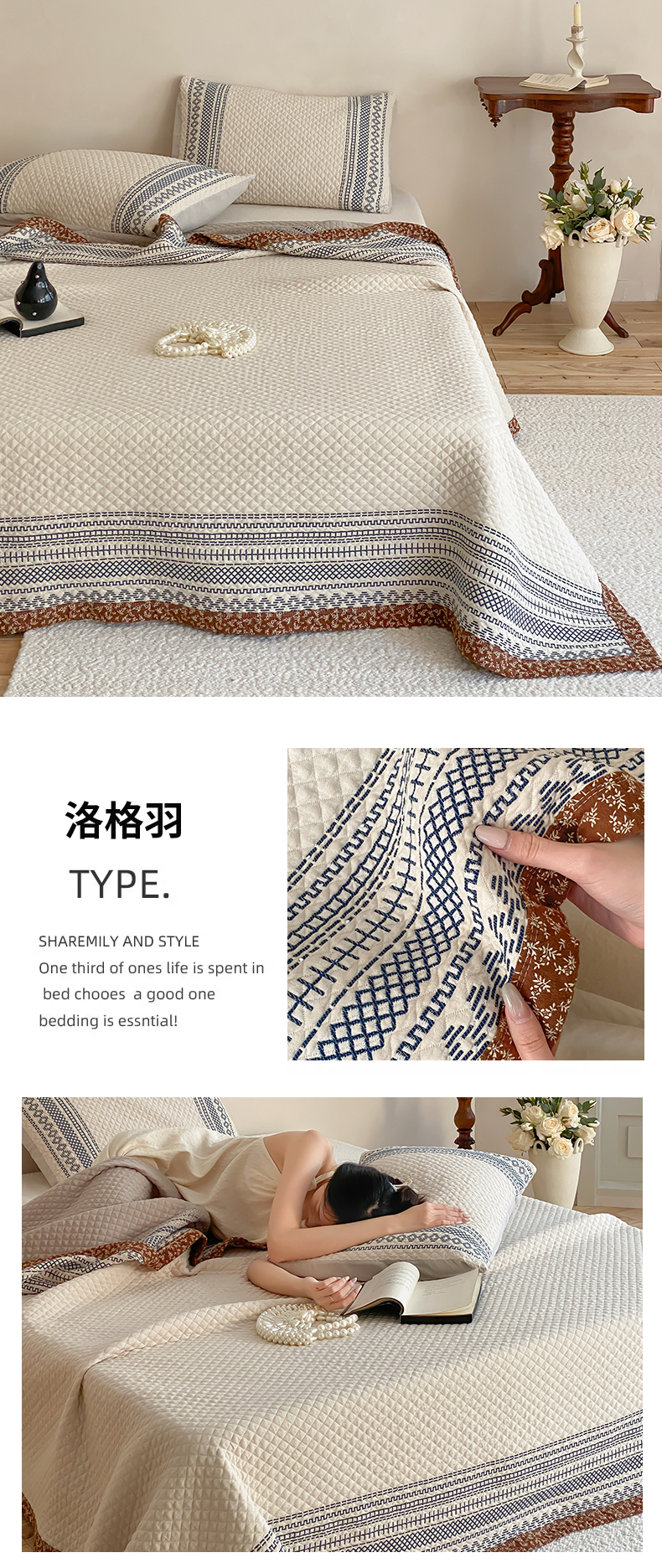 (总)麻依 2026新款韩国重工全棉纱布床盖床盖三件套,楼兰-粉,楼兰-米白,洛格羽,祈福-米白,祈福-水蓝,晴岚-灰咖,晴岚-米白,三叶草,小花排排,烟雨-粉,烟雨-灰咖,韵语-驼,组合图仅供展示-不可下单