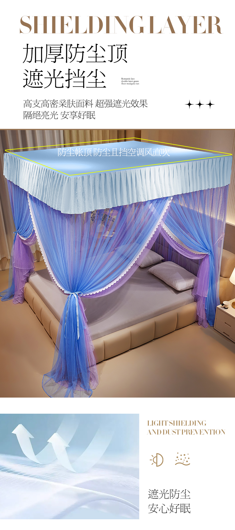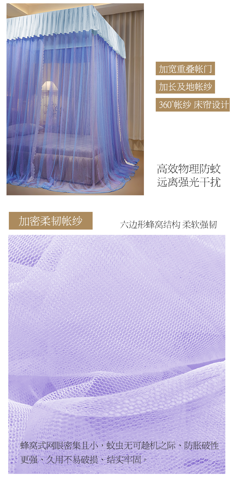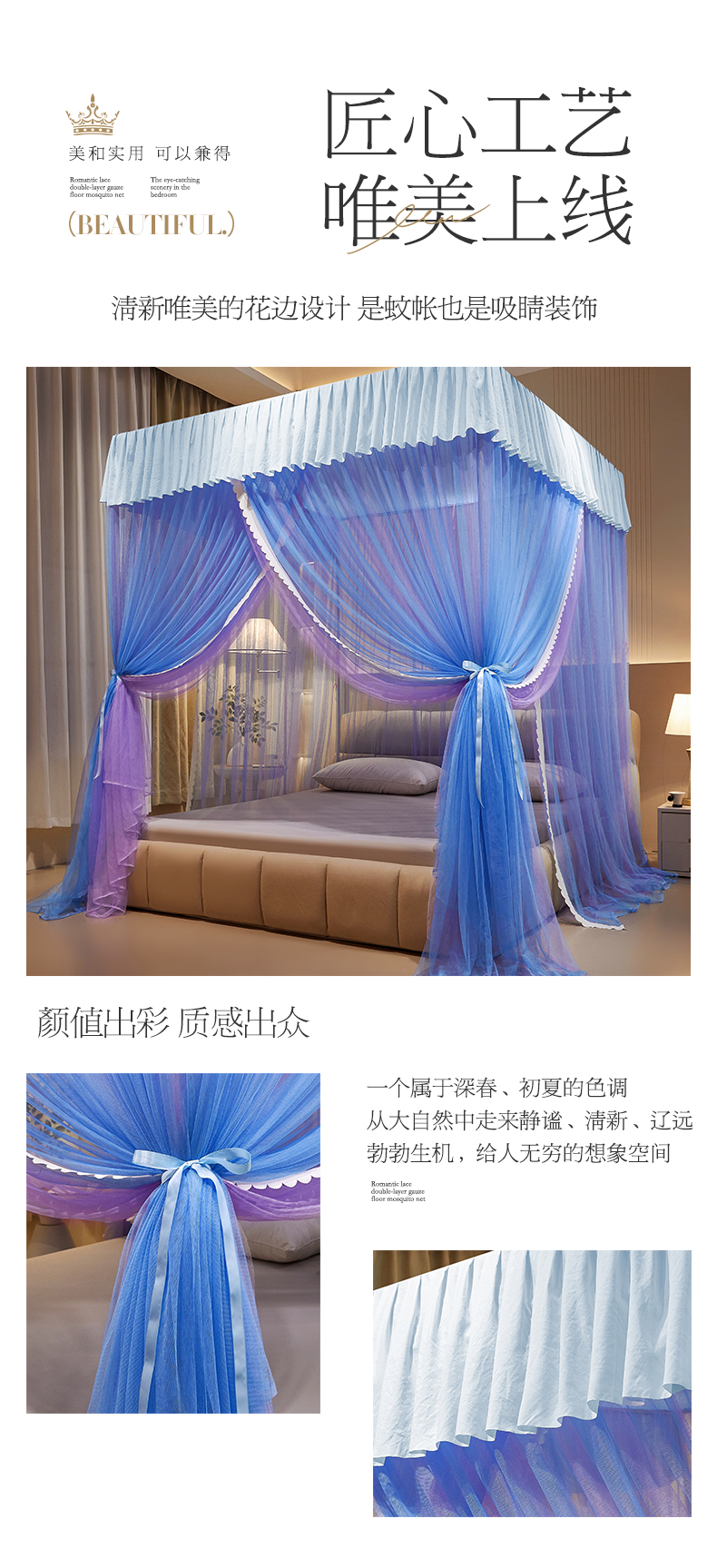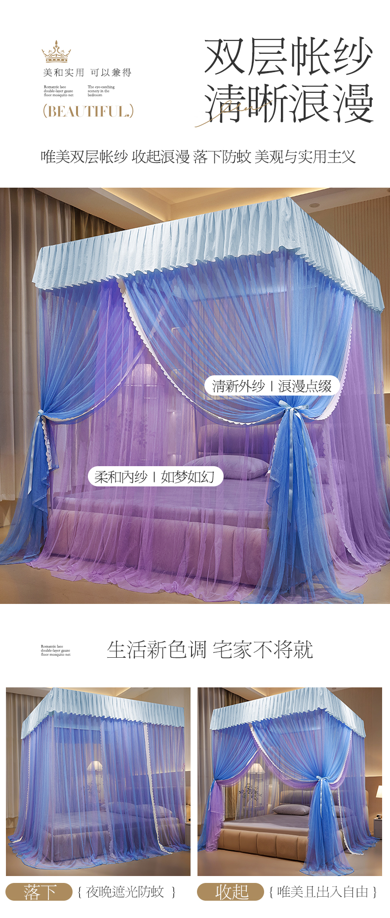 当前位置: 91家纺网 > 商品网购 > 床上用品 > 蚊帐 > 宫廷蚊帐 > 优雅星家纺 2026新款浪漫花边双层纱落地蚊帐-轻舞盛夏 轻舞盛夏 蓝紫