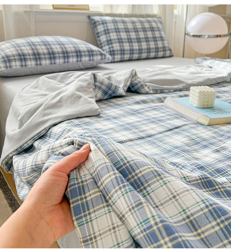 商品名称:纽缦家纺 2026新款水洗棉简约格子风夏被 淡香-兰