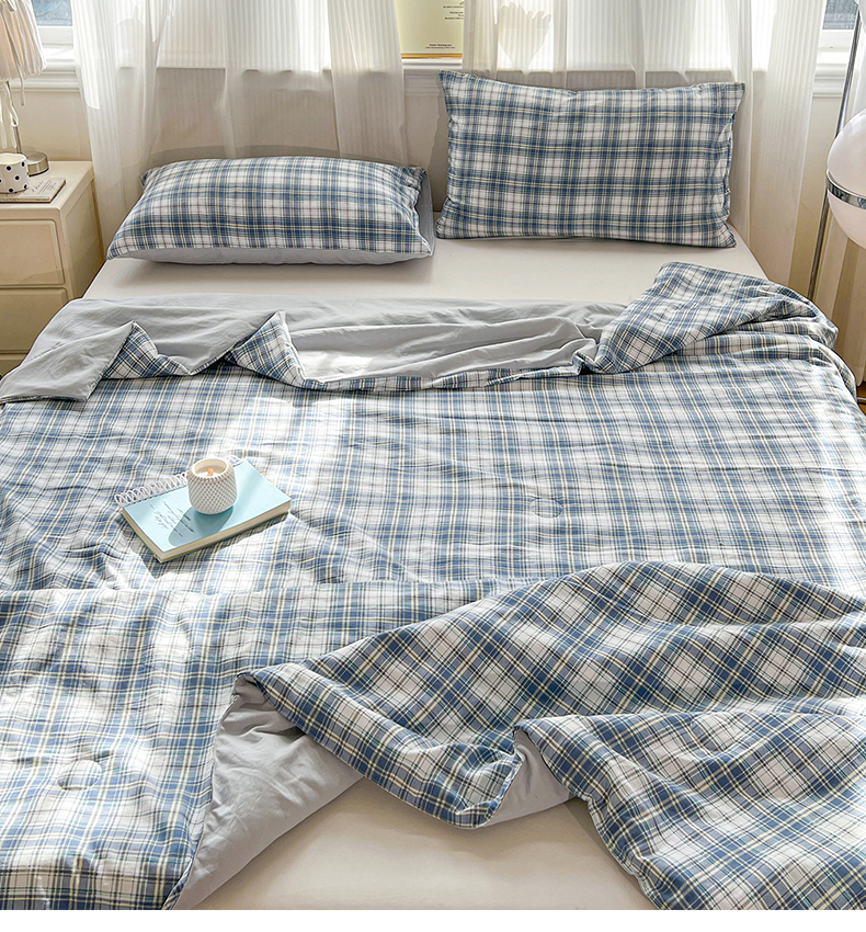 纽缦家纺 2026新款水洗棉简约格子风夏被 云初