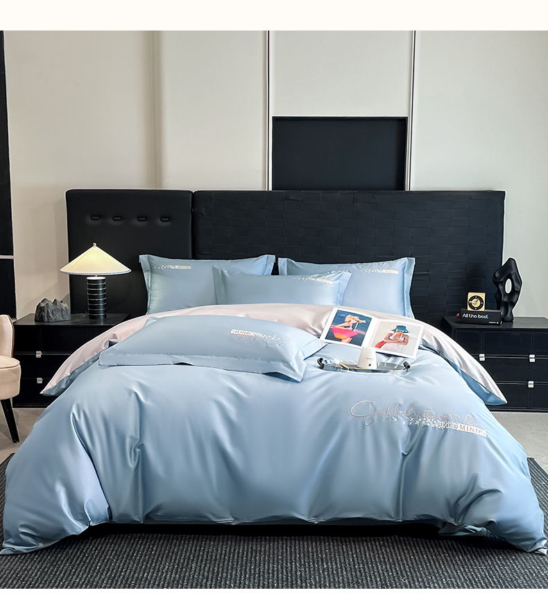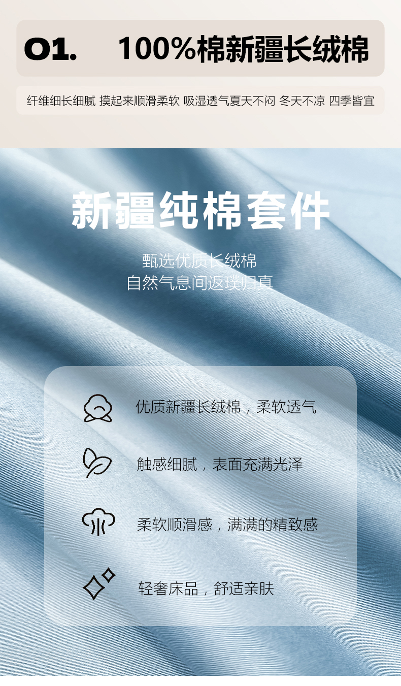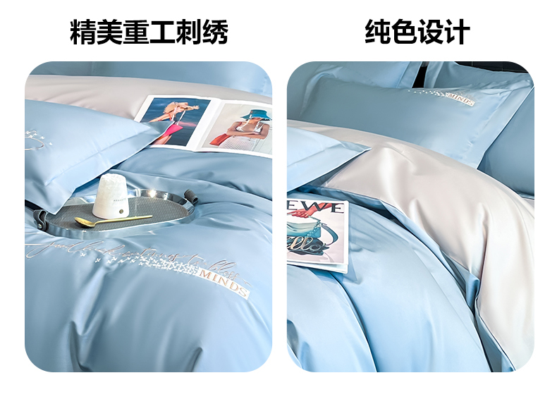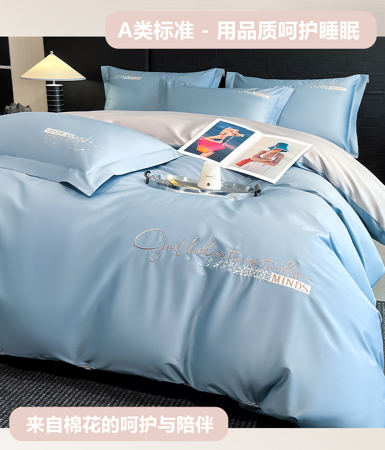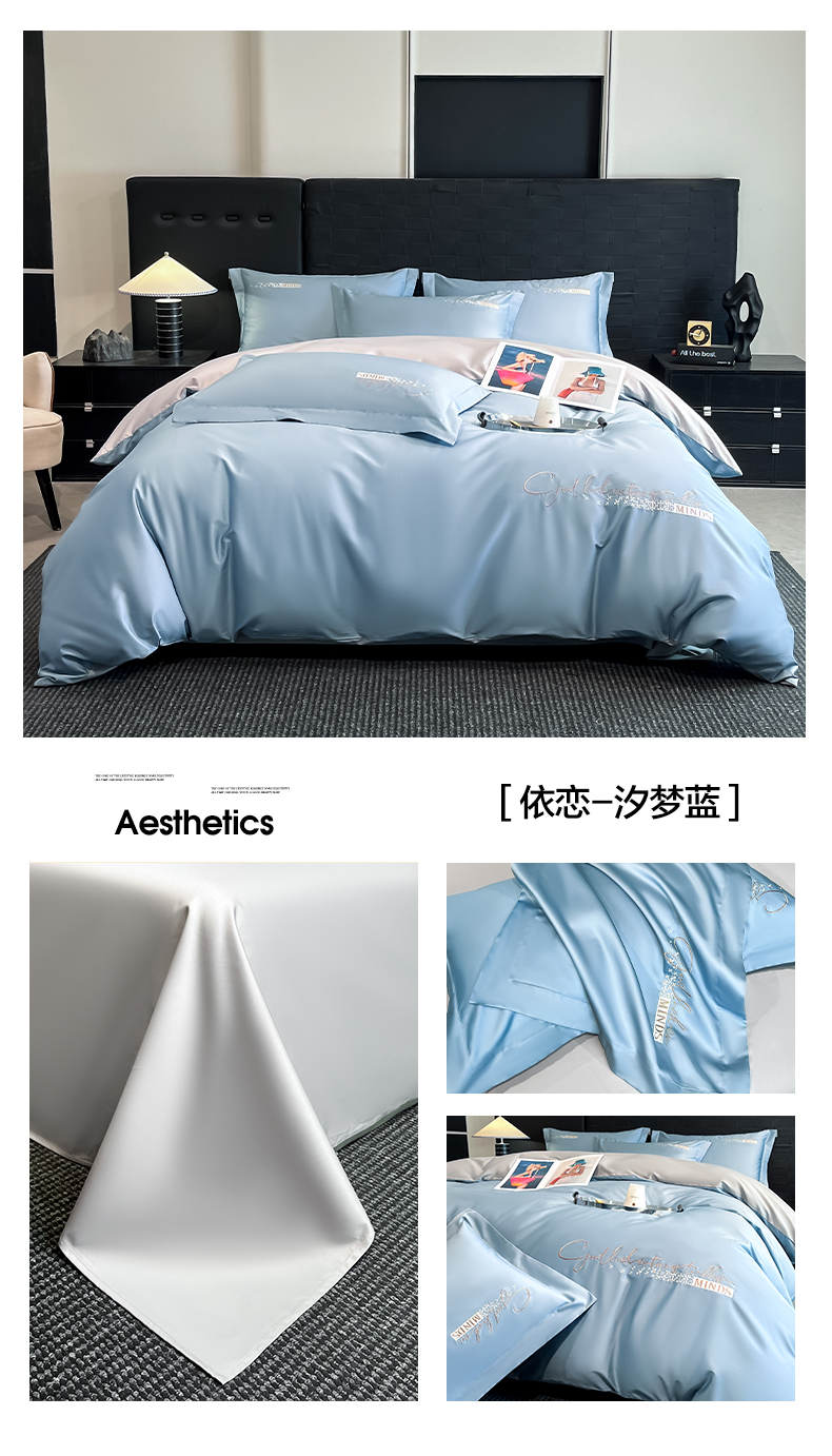 当前位置: 91家纺网 > 商品网购 > 床品套件 > 四件套 > 全棉普通四件套 > 拼社家纺 2026新款A类全棉贡缎长绒棉四件套全棉四件套简约刺绣纯色纯棉床上用品(提供买家秀) 依恋-汐梦蓝