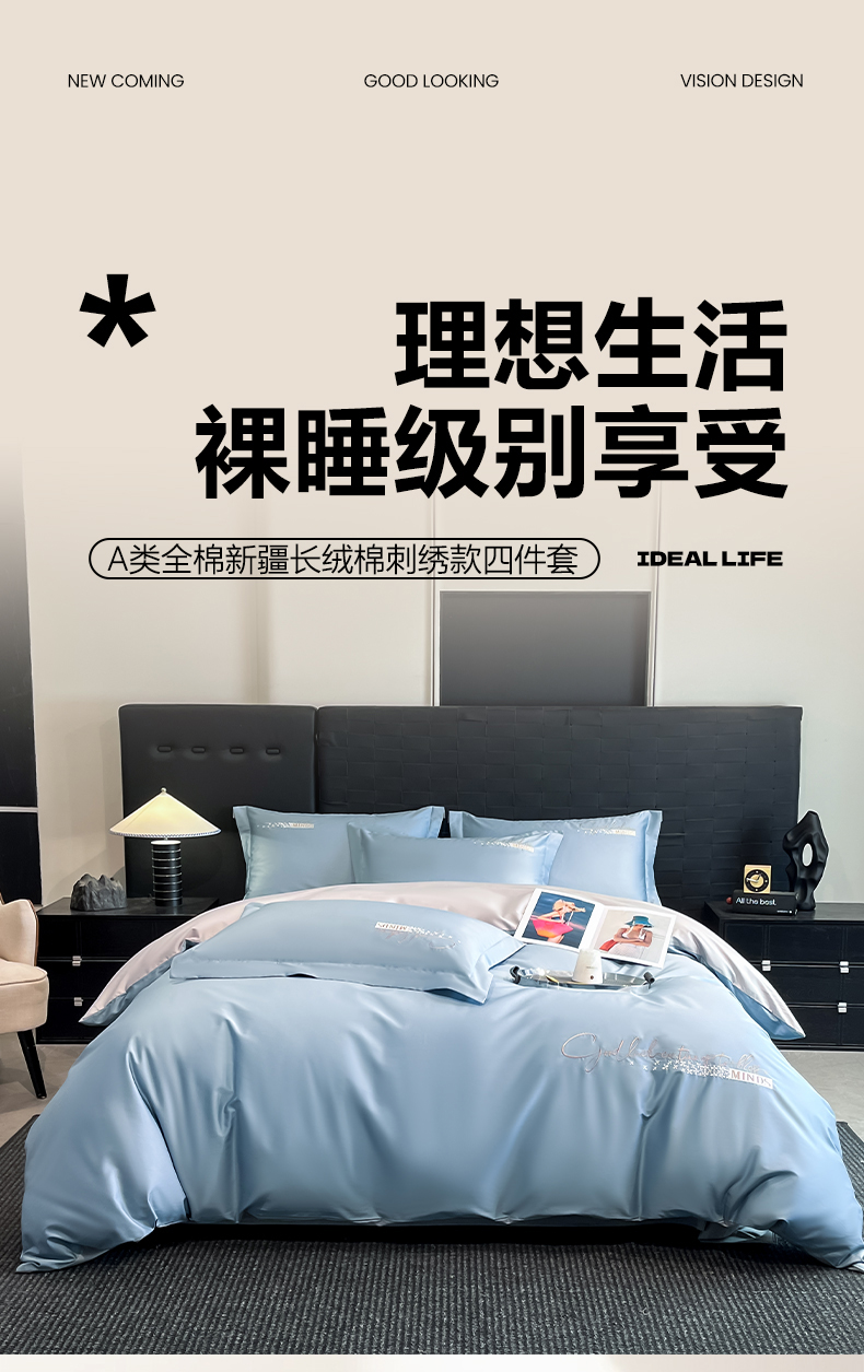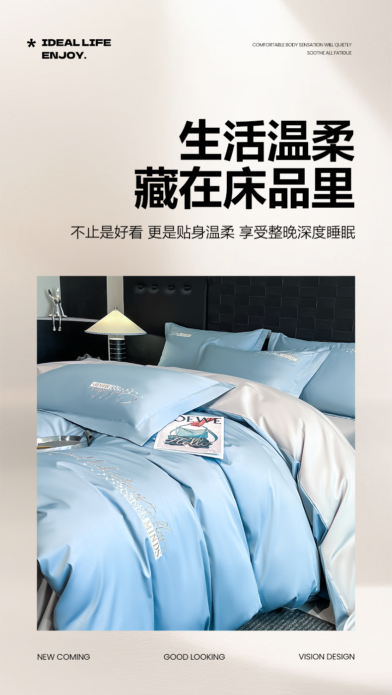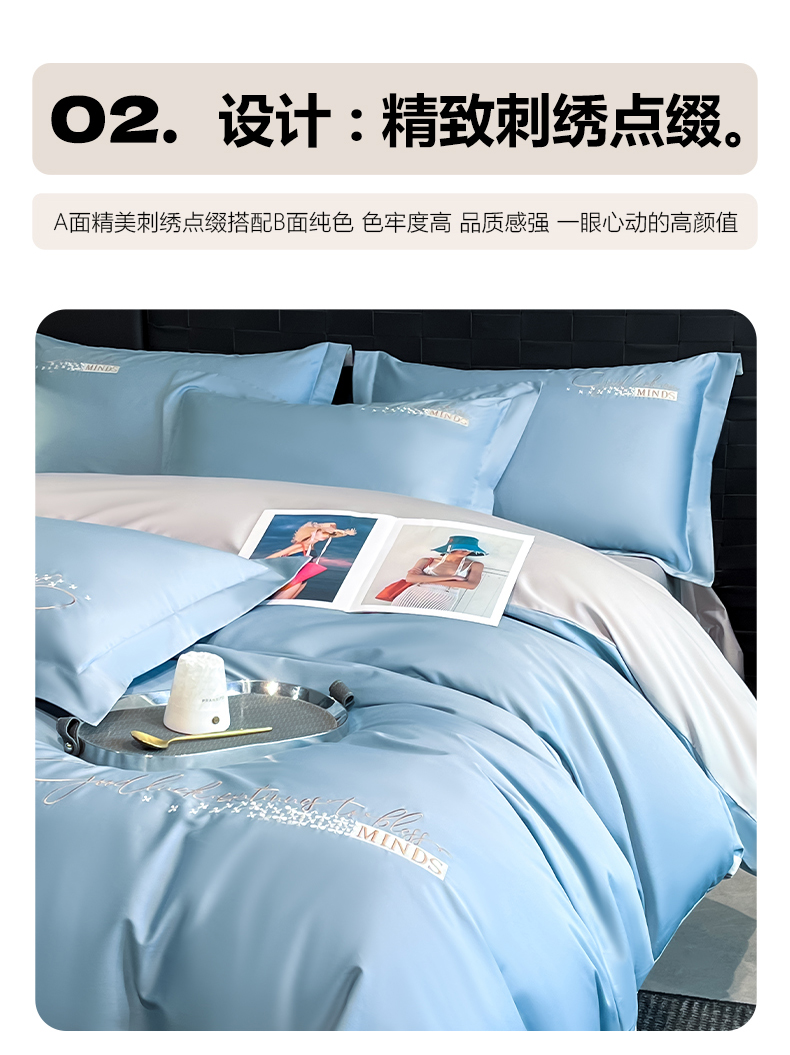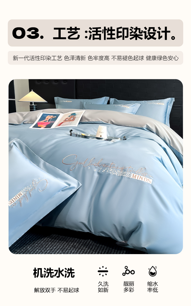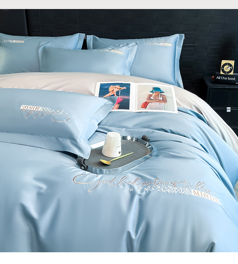 当前位置: 91家纺网 > 商品网购 > 床品套件 > 四件套 > 全棉普通四件套 > 拼社家纺 2026新款A类全棉贡缎长绒棉四件套全棉四件套简约刺绣纯色纯棉床上用品(提供买家秀) 依恋-汐梦蓝