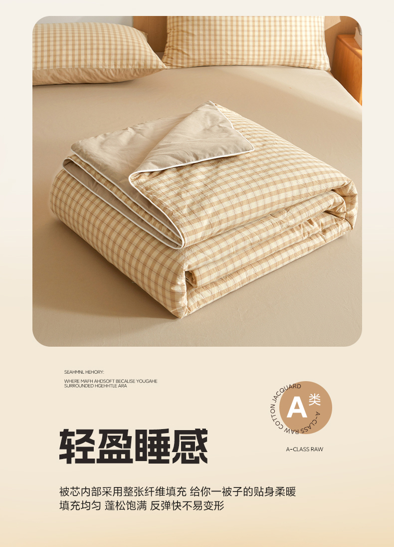 • 91家纺网 家纺一手货源 找家纺 (总)典冠 2025新款色织提花大豆被学生被被子被芯,豆绿,奶油咖,杏子灰,樱花粉,月光白