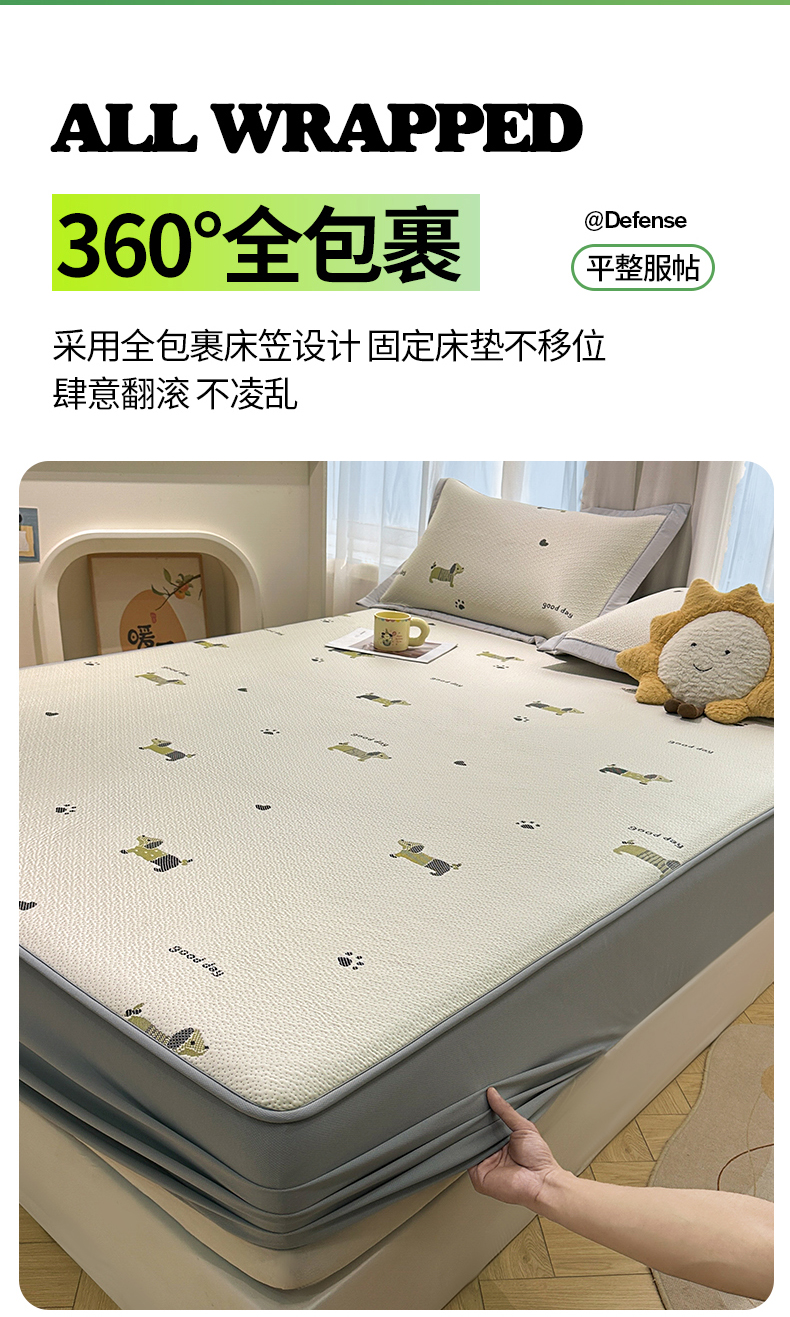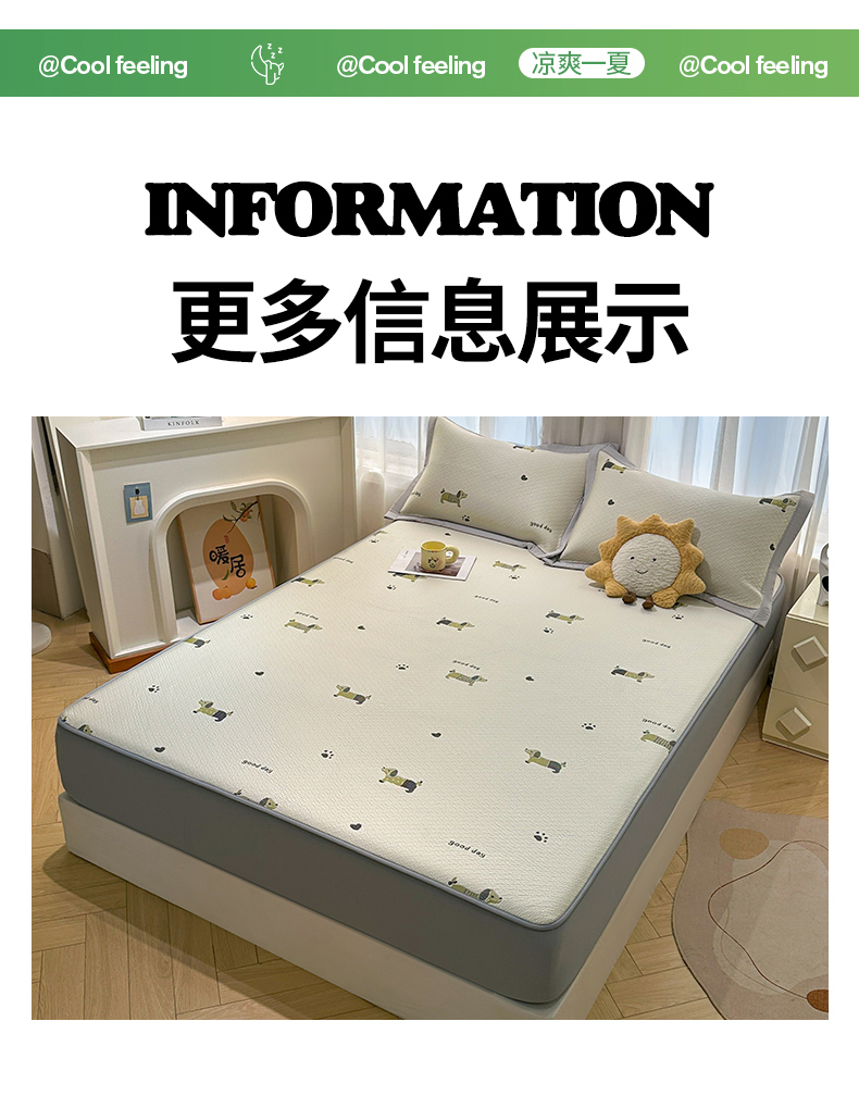 商品名称:(总)居易简 2026新款卡通实拍小红书爆款凉豆豆凉席100%PE 乙纶凉感可水洗床席席子-床笠款