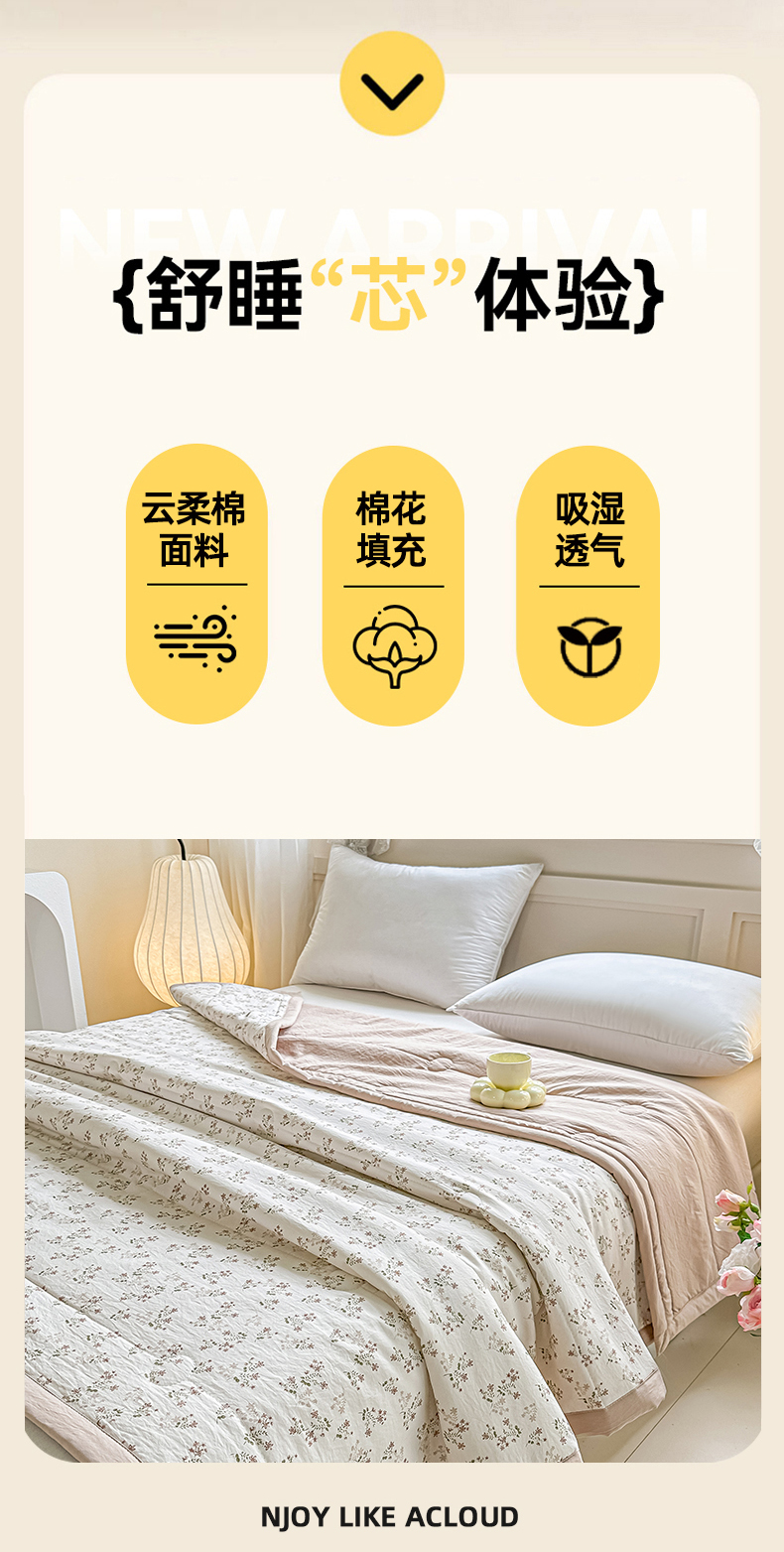 • 91家纺网 家纺一手货源 找家纺 好欣怡家纺 2026新款110克云柔棉被子50%新疆棉花夏被冬被被芯直播首选(含检测报告) 碧叶粉黛-夏被