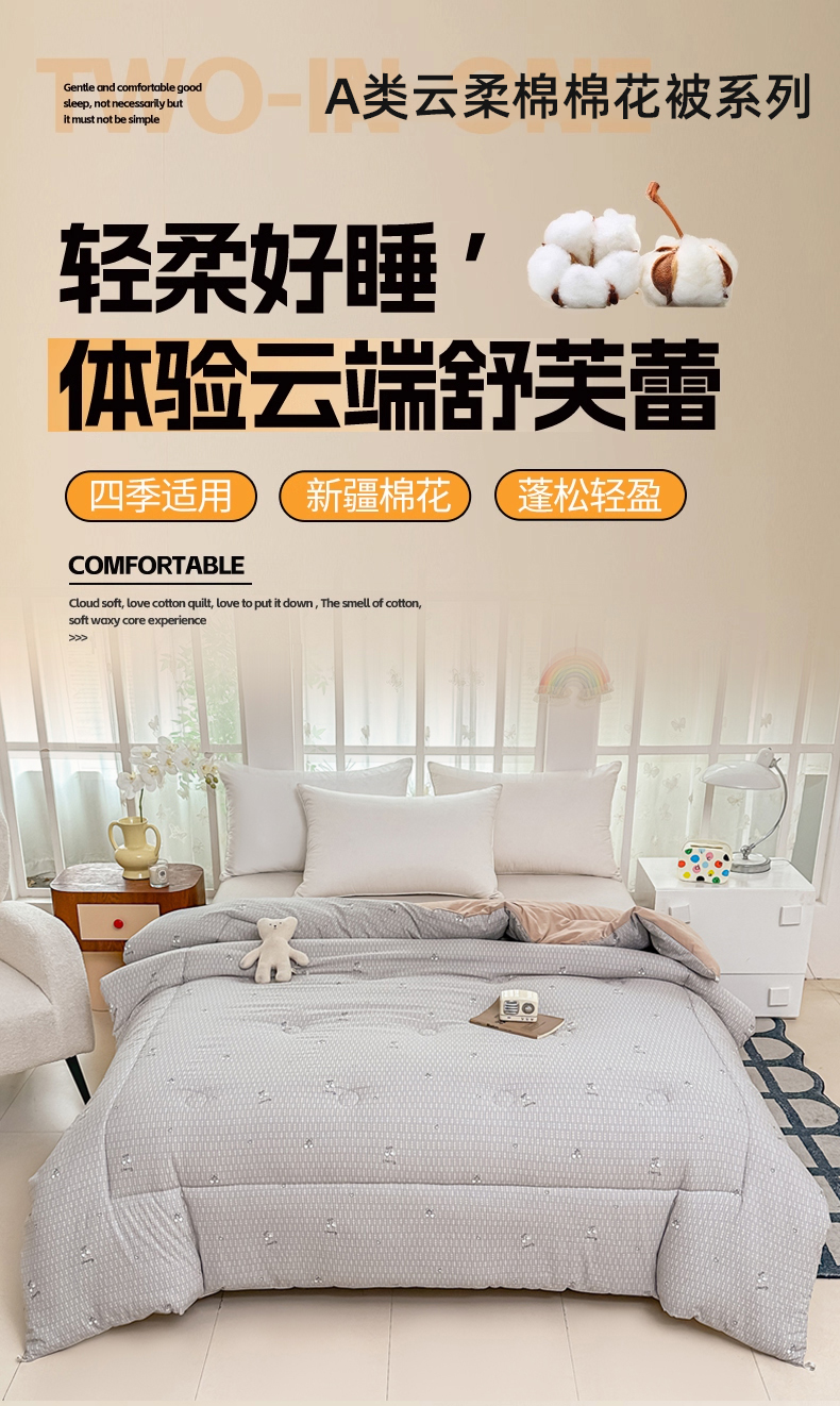 • 91家纺网 家纺一手货源 找家纺 (总)好欣怡家纺 2026新款A类水洗棉新疆棉花冬被被子被芯棉花被直播,黛粉,奶油白,月光灰