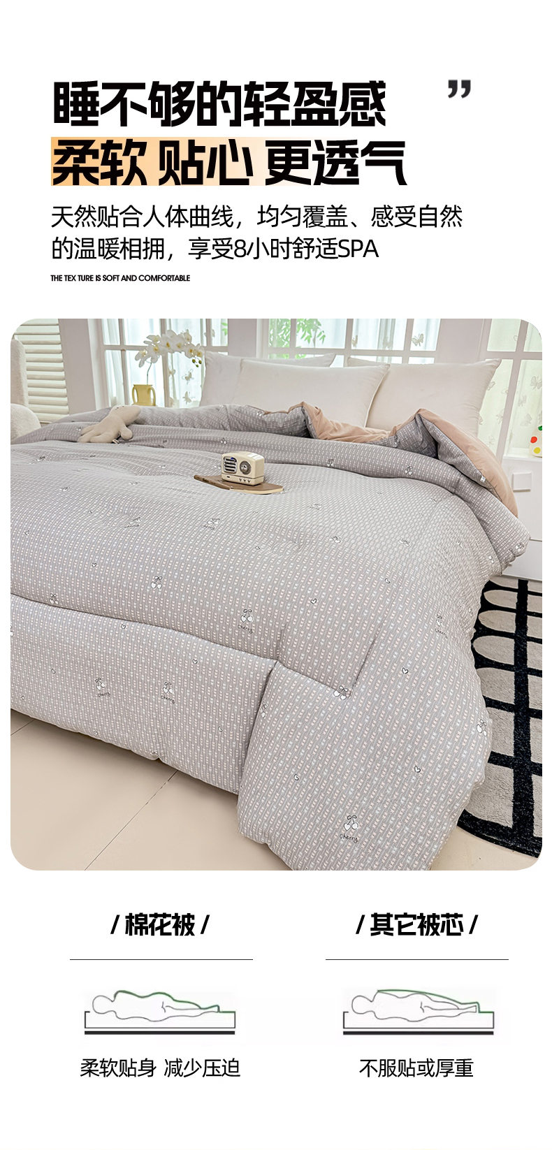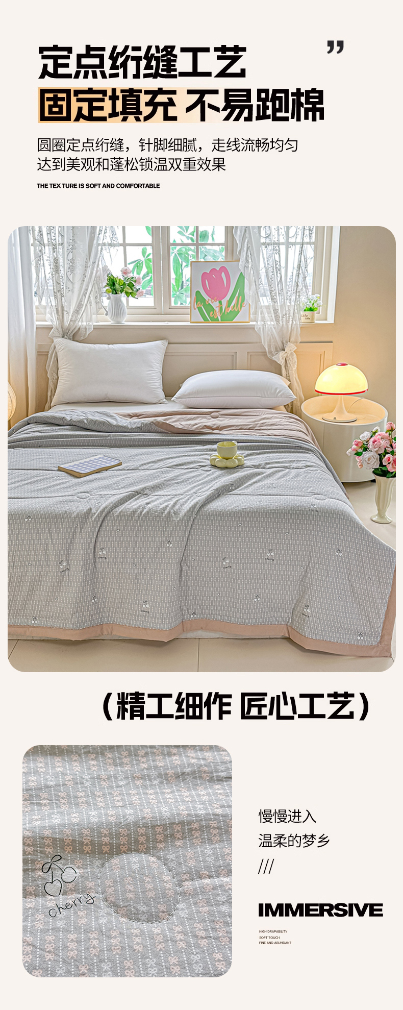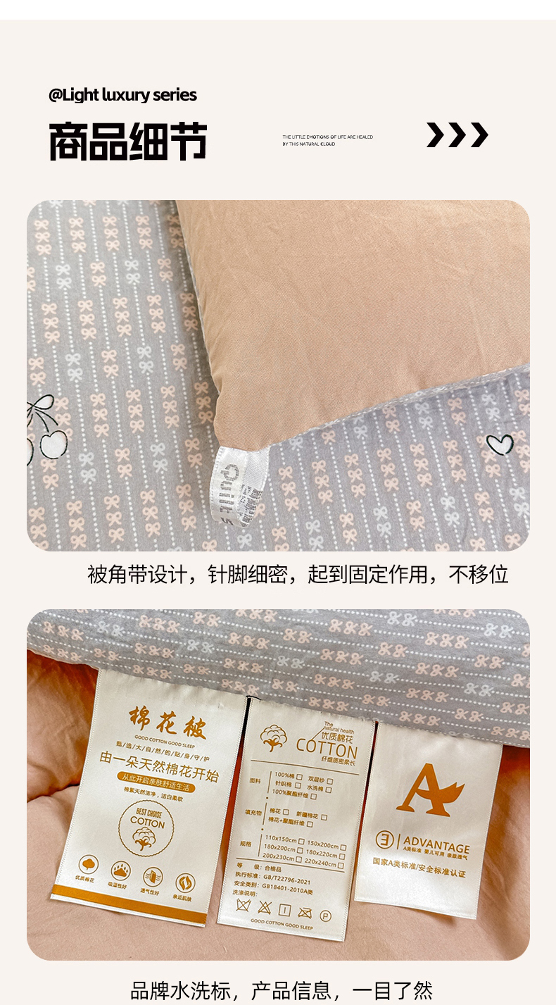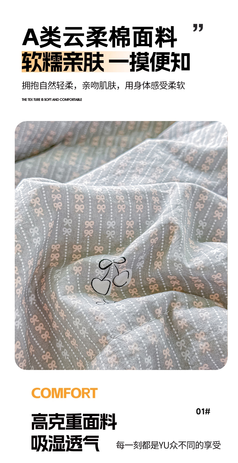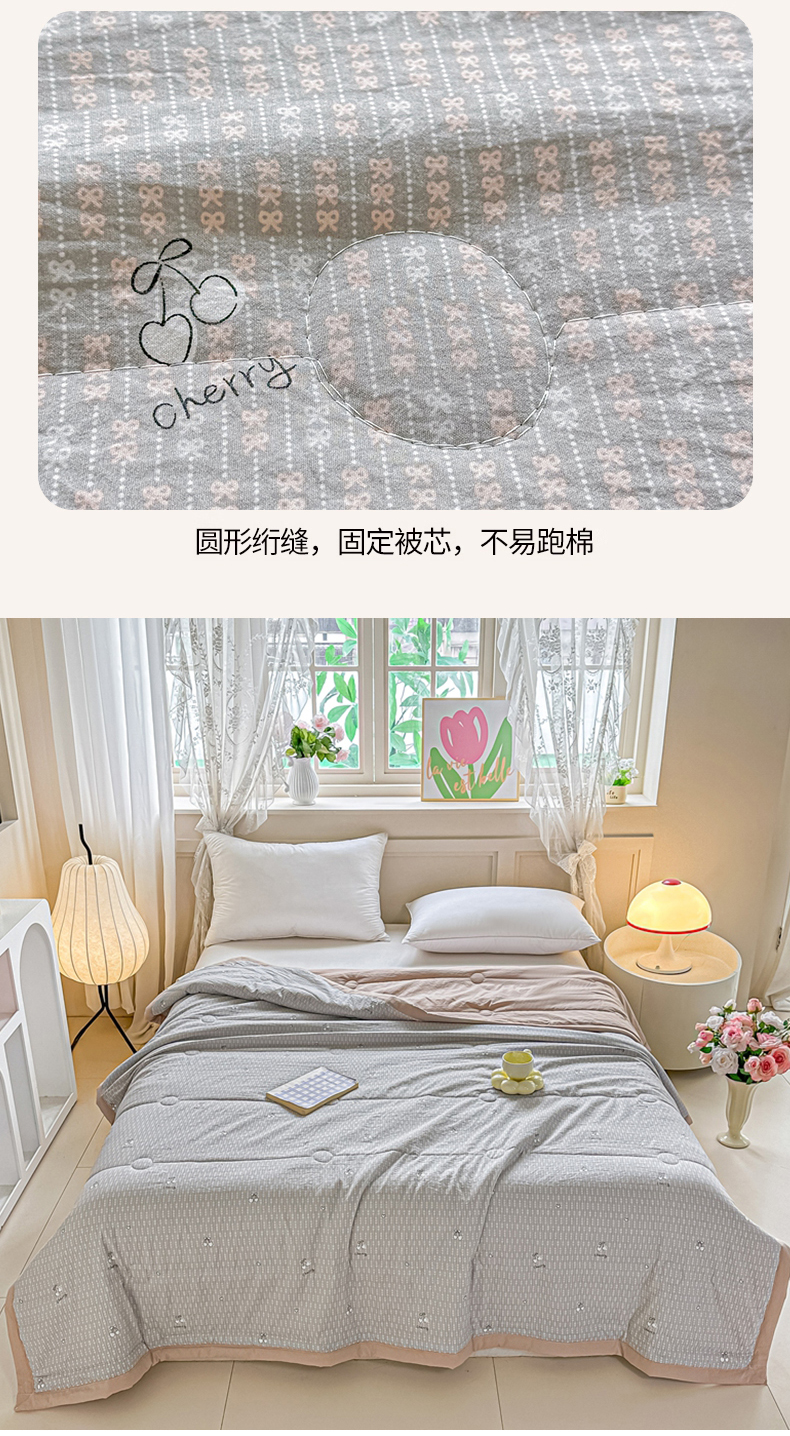 • 91家纺网 家纺一手货源 找家纺 好欣怡家纺 2026新款110克云柔棉被子50%新疆棉花夏被冬被被芯直播首选(含检测报告) 樱桃蝴蝶结-夏被