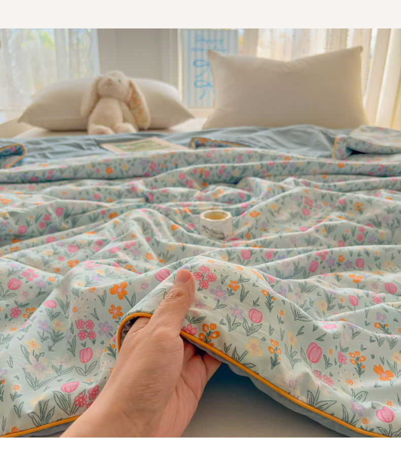 (总)宜梦家居【需要买家秀请联系老板】 2025新款双面纯棉夹层新疆棉花高温砂洗全棉床盖,爱达拉蓝,爱达拉粉,呆萌熊咖,迪克奥莱,美味樱桃,清茶小熊,踏春小兔,甜蜜小兔,仙草兔,银杉之梦