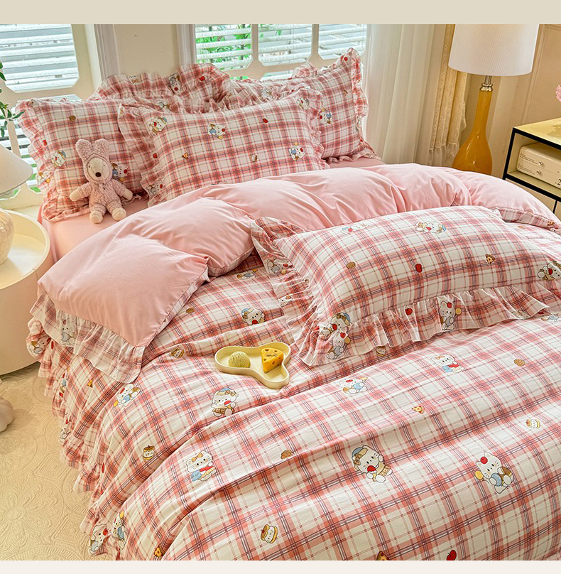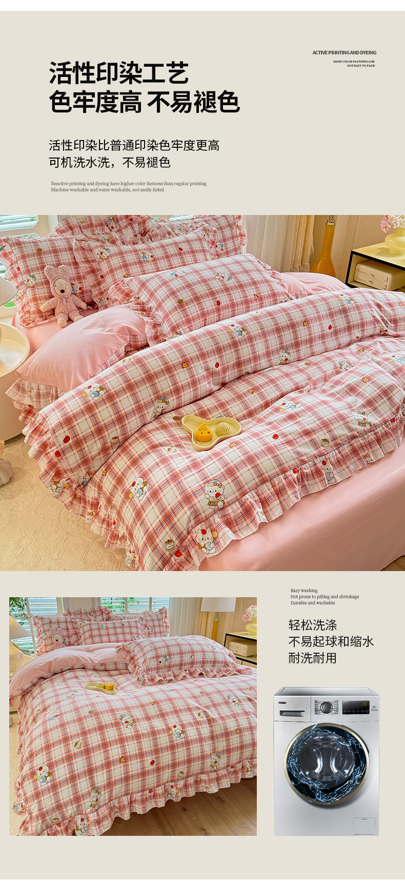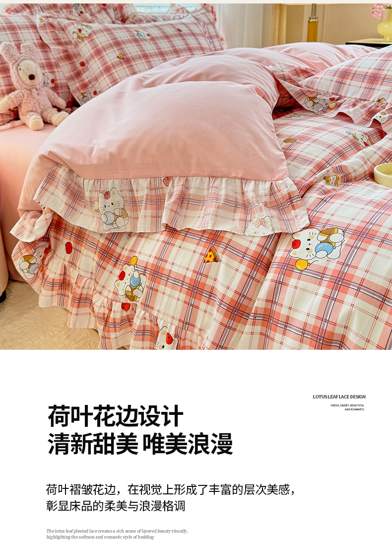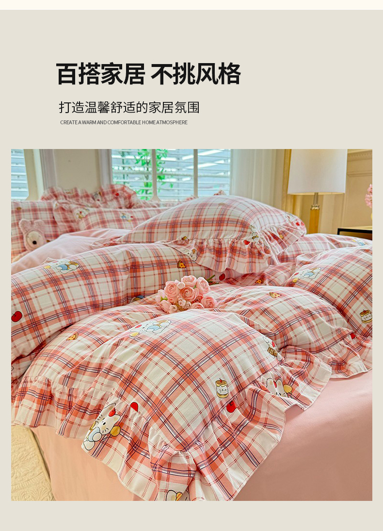 当前位置: 91家纺网 > 商品网购 > 床品套件 > 四件套 > 水洗棉四件套 > 经年 2026新款韩版花边水洗云朵棉四件套 复古K猫粉