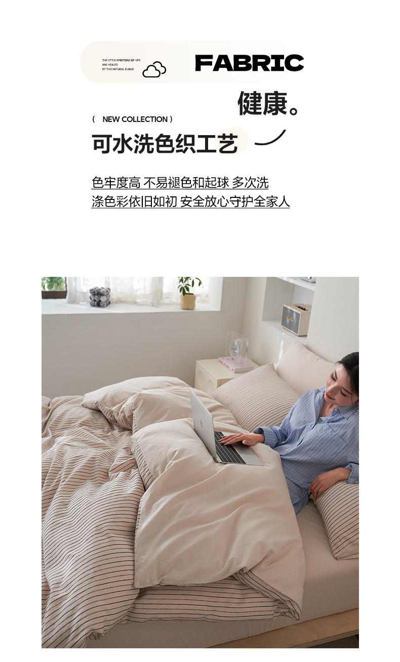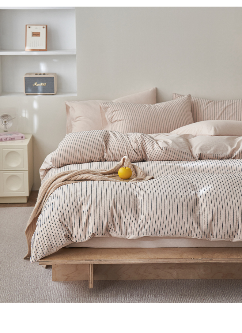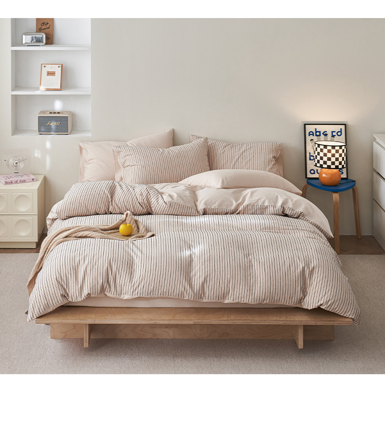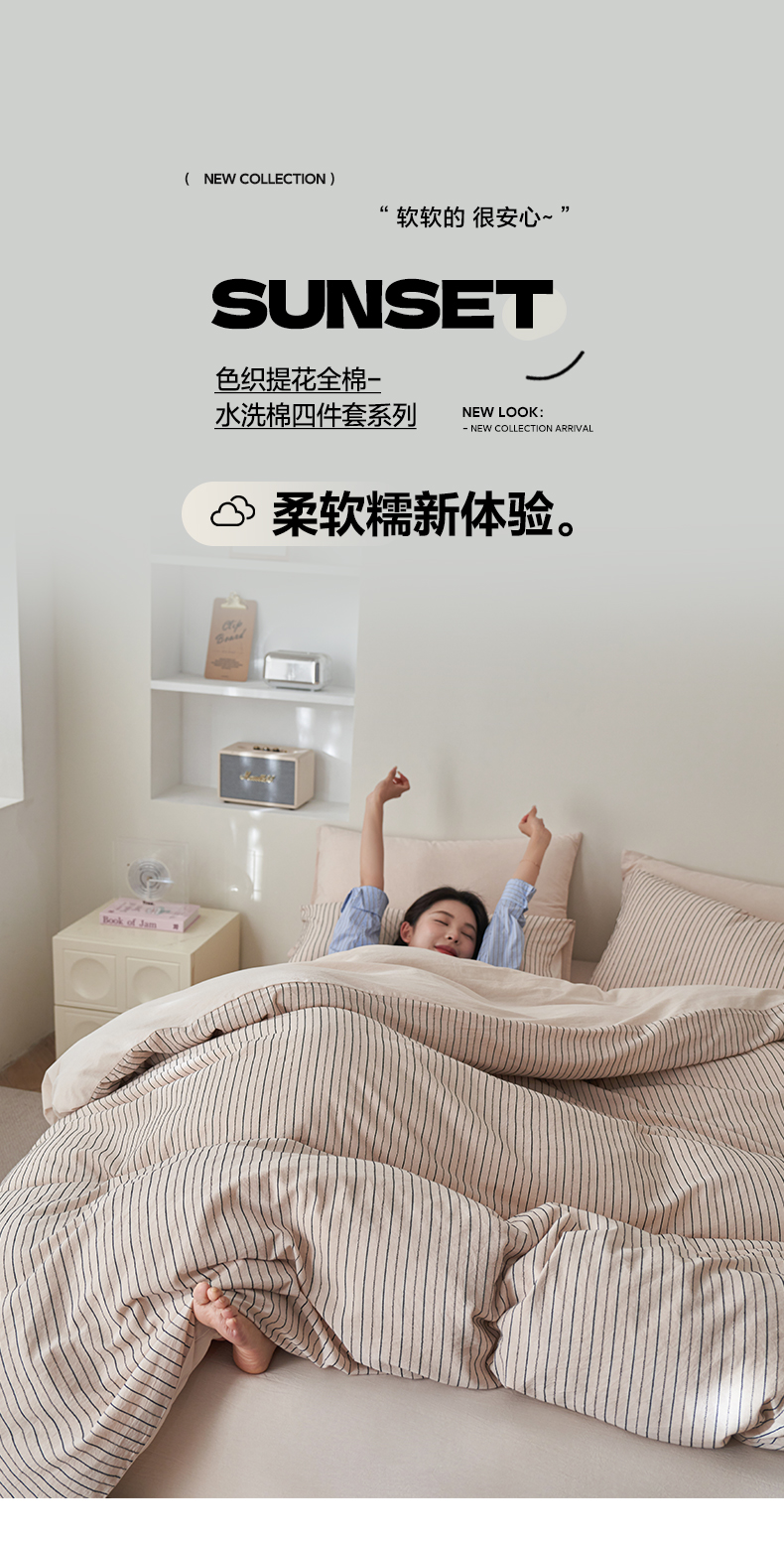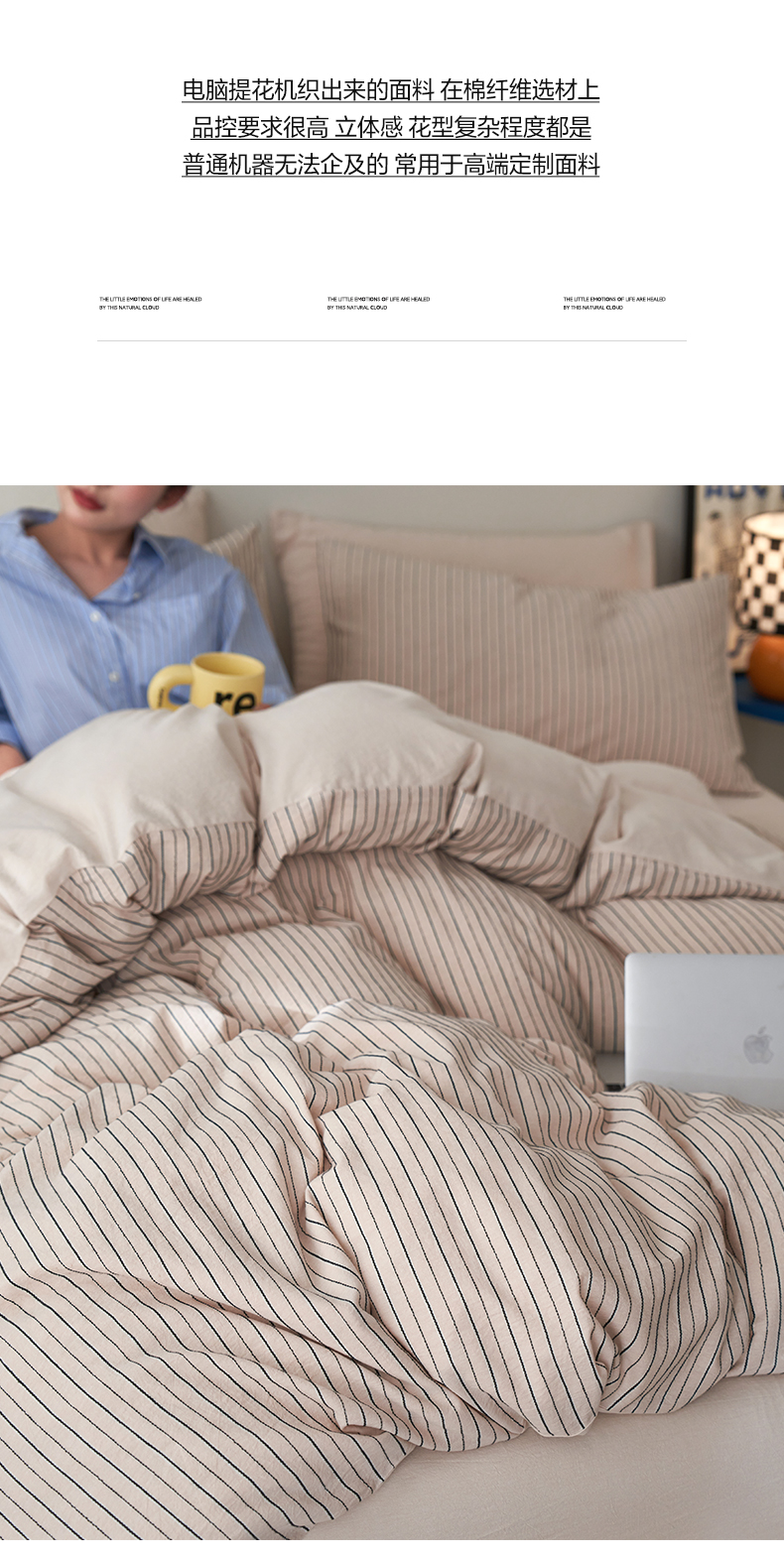 当前位置: 91家纺网 > 商品网购 > 床品套件 > 四件套 > 全棉普通四件套 > 如一 2026新款色织小提花条纹全棉纯棉水洗棉四件套 禾风-驼