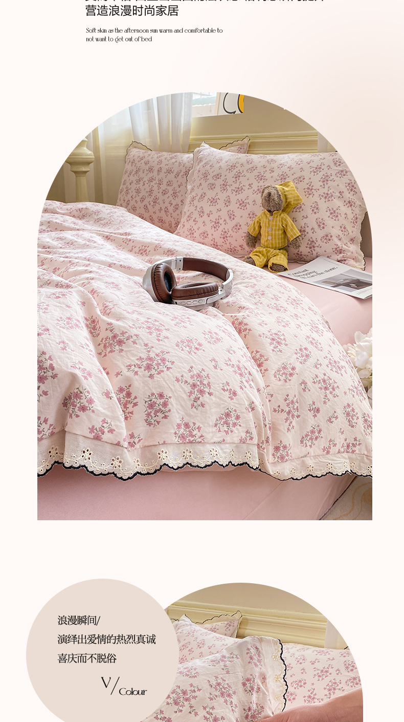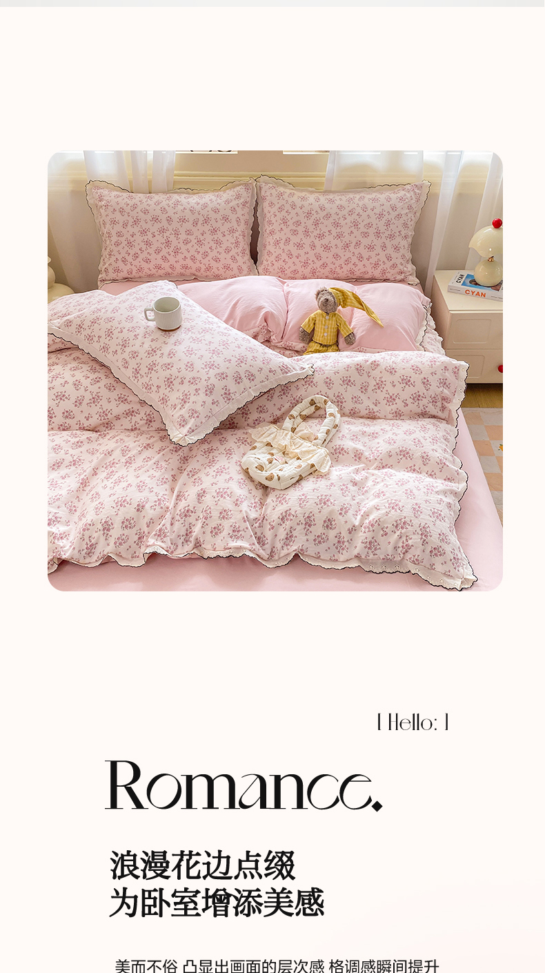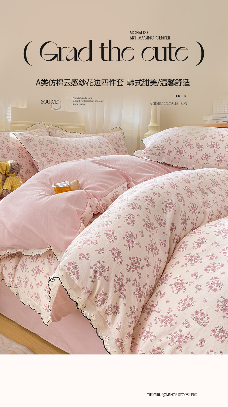 豫见家纺 2026新款A类仿棉云感纱花边四件套 日光漫游
