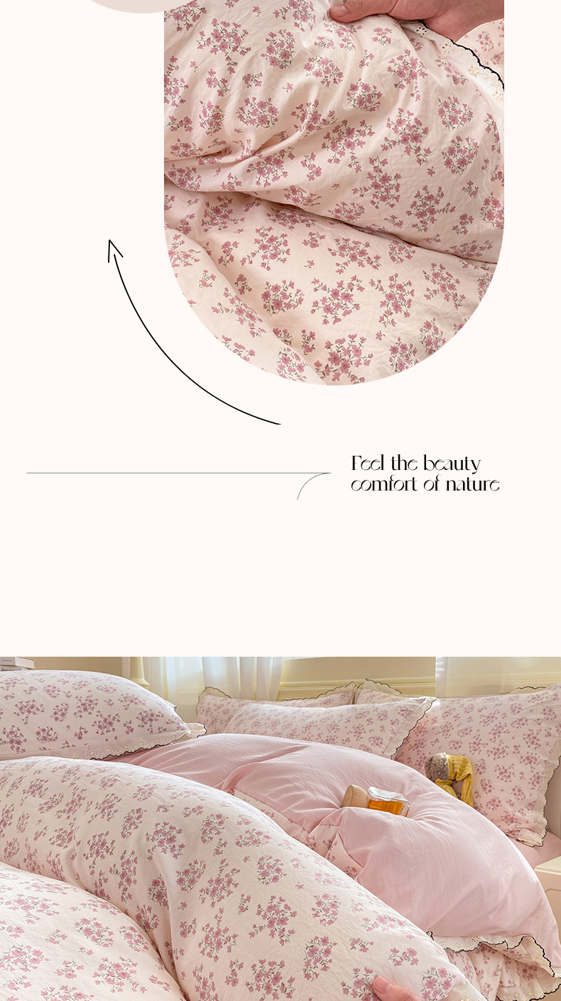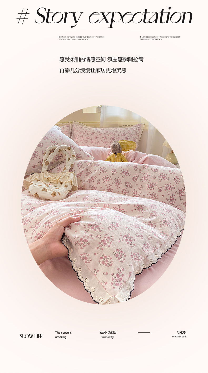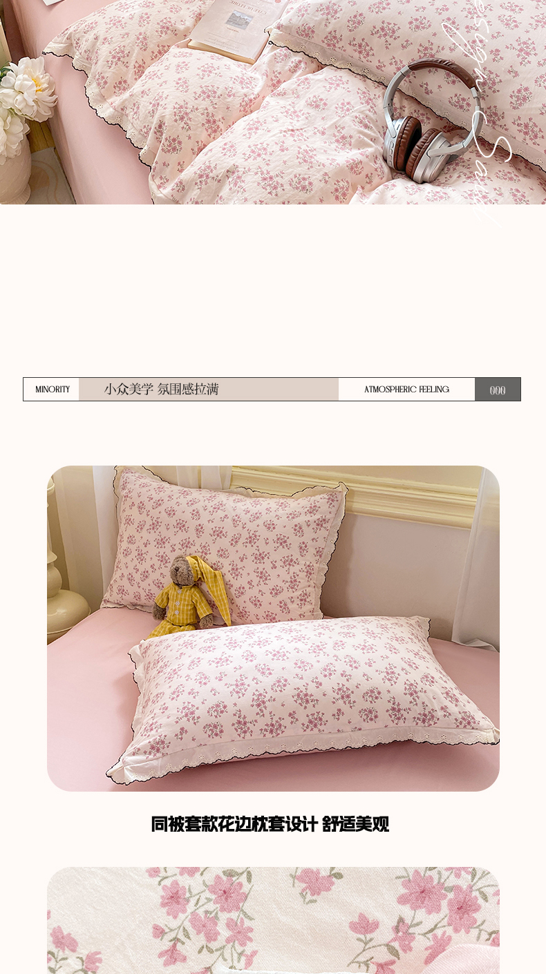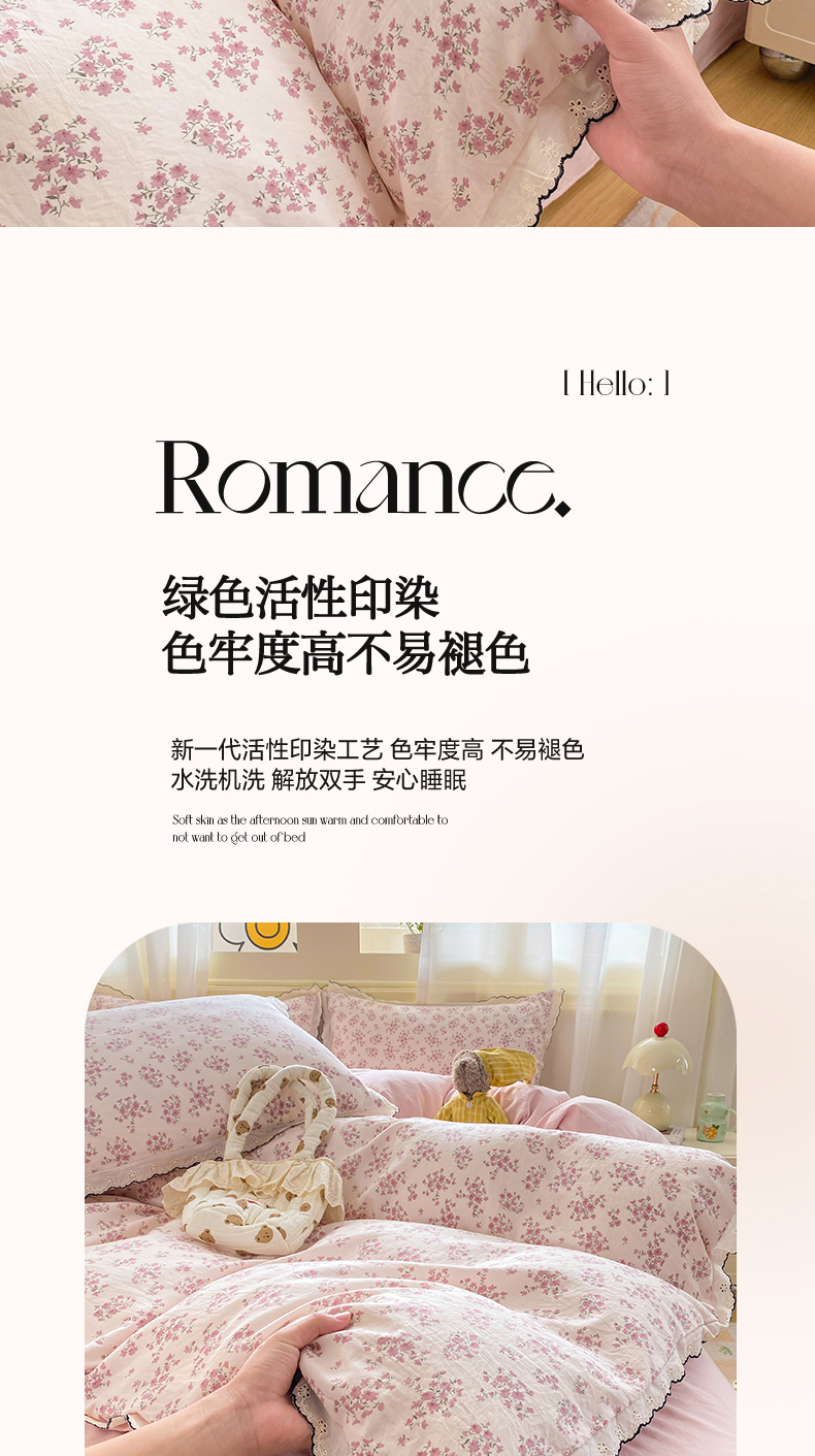 豫见家纺 2026新款A类仿棉云感纱花边四件套 日光漫游
