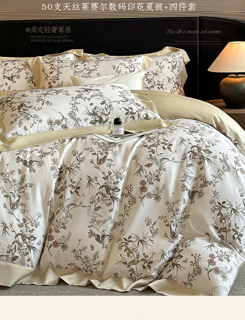 当前位置: 91家纺网 > 商品网购 > 床品套件 > 四件套 > 莱赛尔四件套 > 蓝米卡夫 2026夏季新款50S天丝数码印花夏被夏凉被空调被四件套 春意