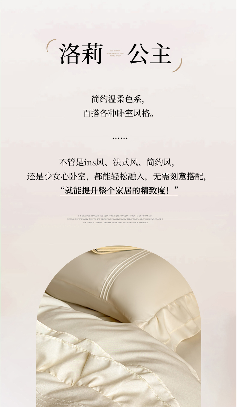 (总)苏源家居 2026新款亲肤棉磨毛双层荷叶边埋绳公主风四件套-洛莉,洛莉米白,洛莉奶油粉