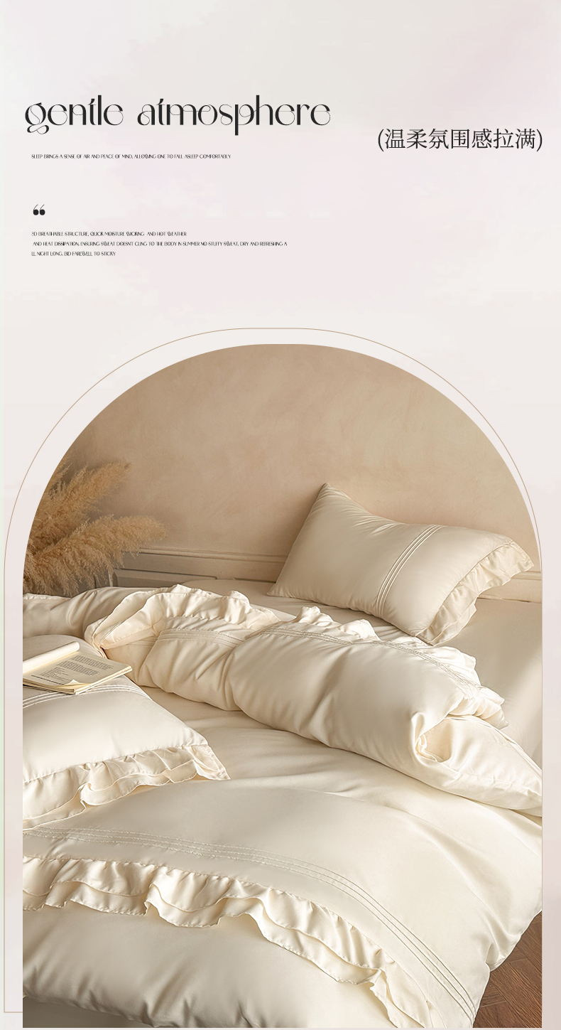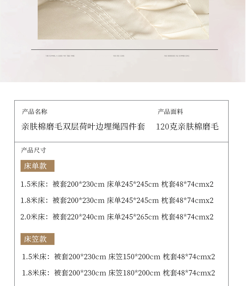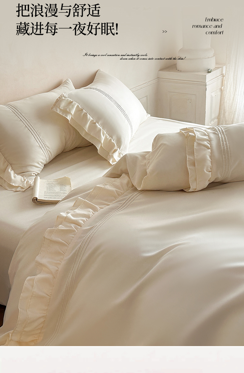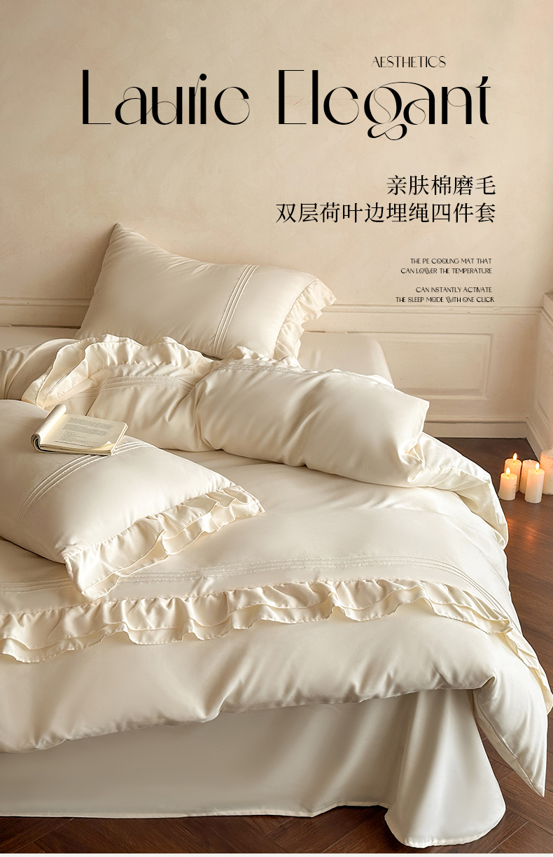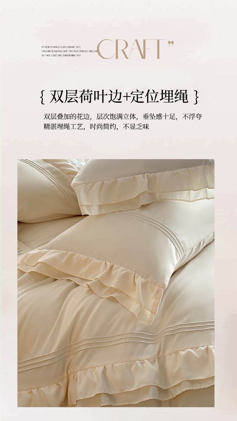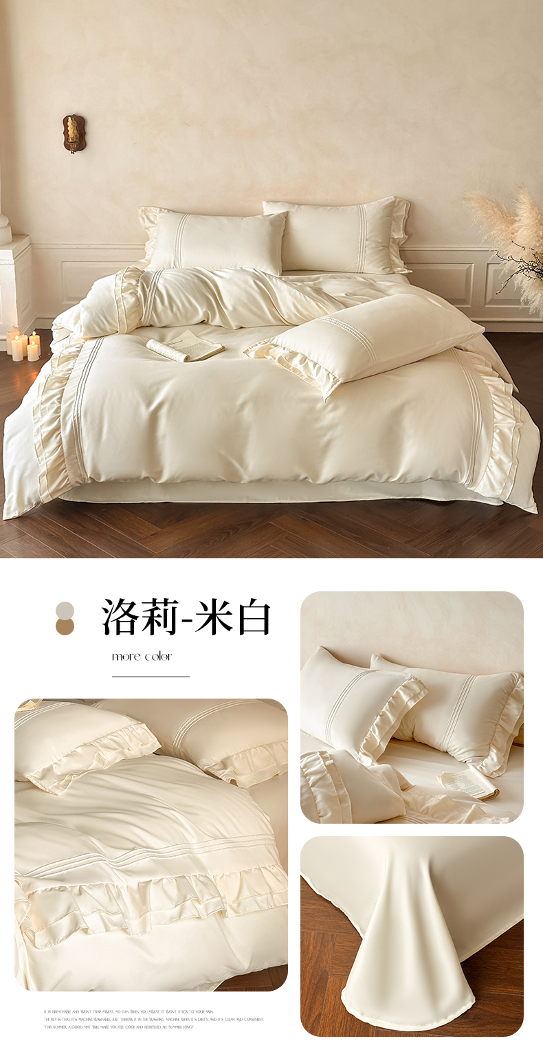 商品名称:苏源家居 2026新款亲肤棉磨毛双层荷叶边埋绳公主风四件套-洛莉 洛莉米白