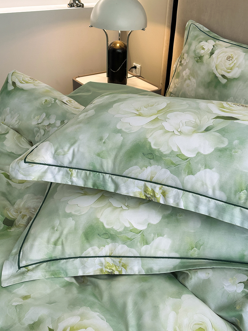 眷恋家纺 2026年新款春夏全棉铂金棉单枕套 墨雨云间-绿