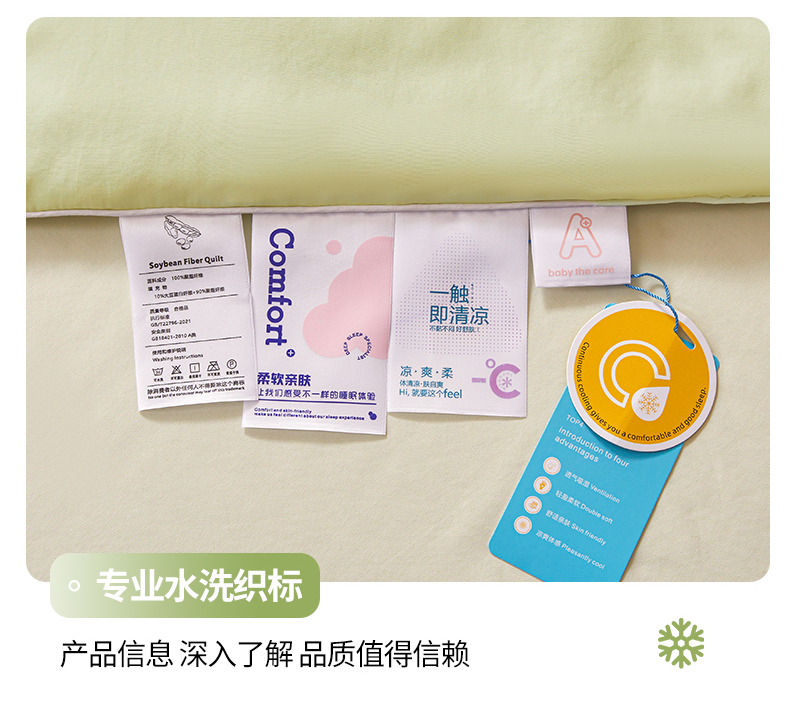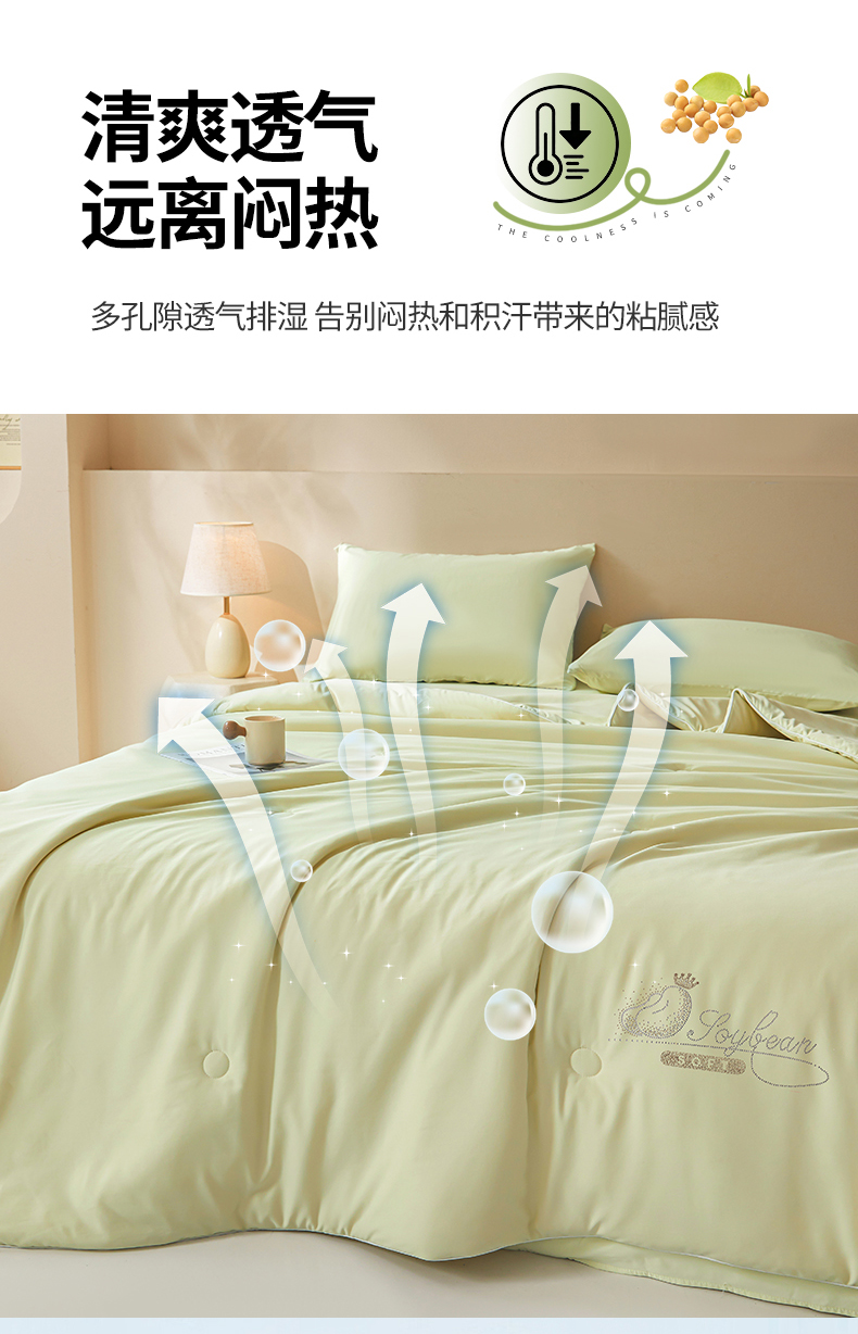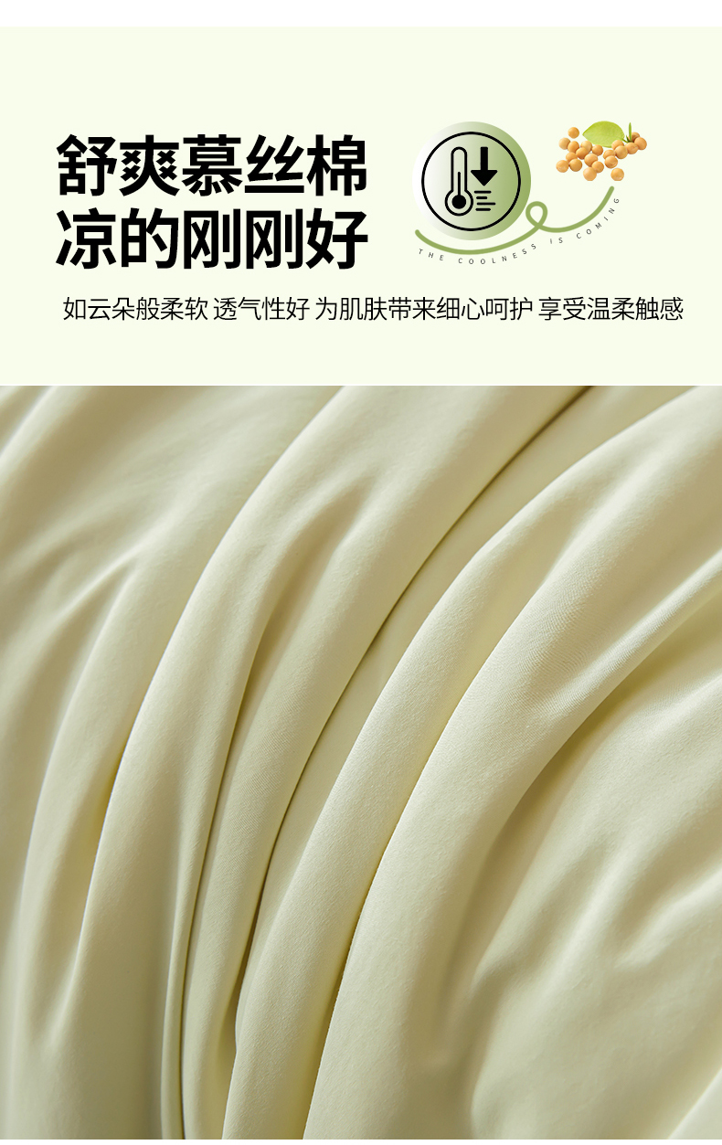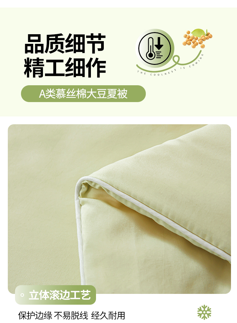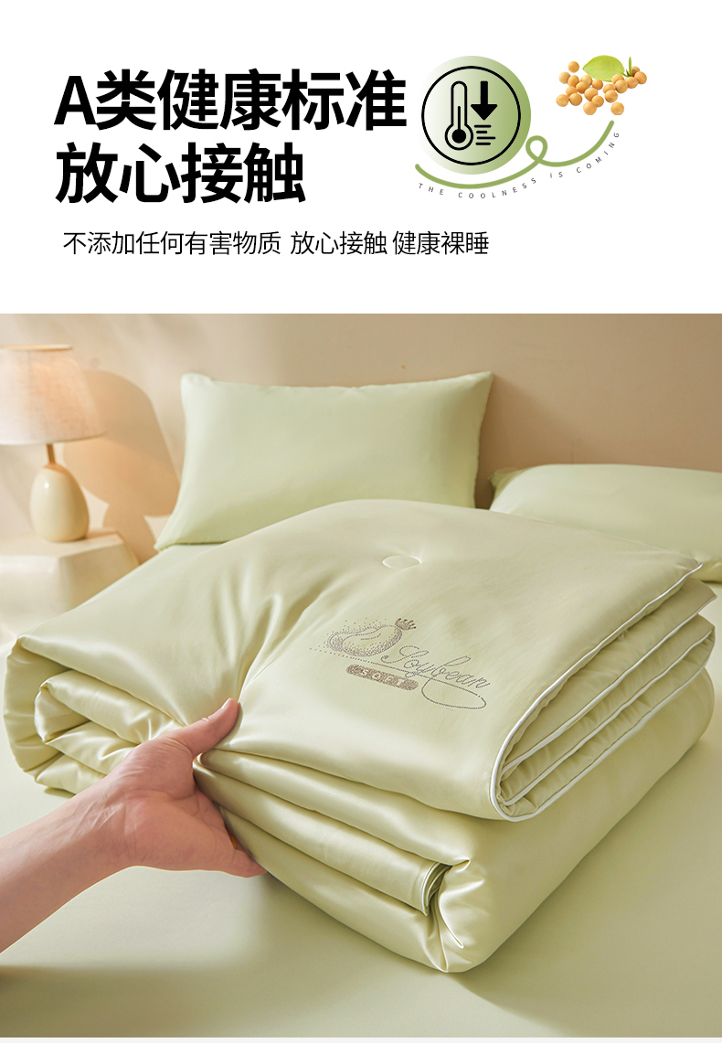 商品名称:秋泽家纺2026慕丝棉纯色凉感大豆纤维夏被 烫钻工艺四边踩棉不跑棉 抹茶绿