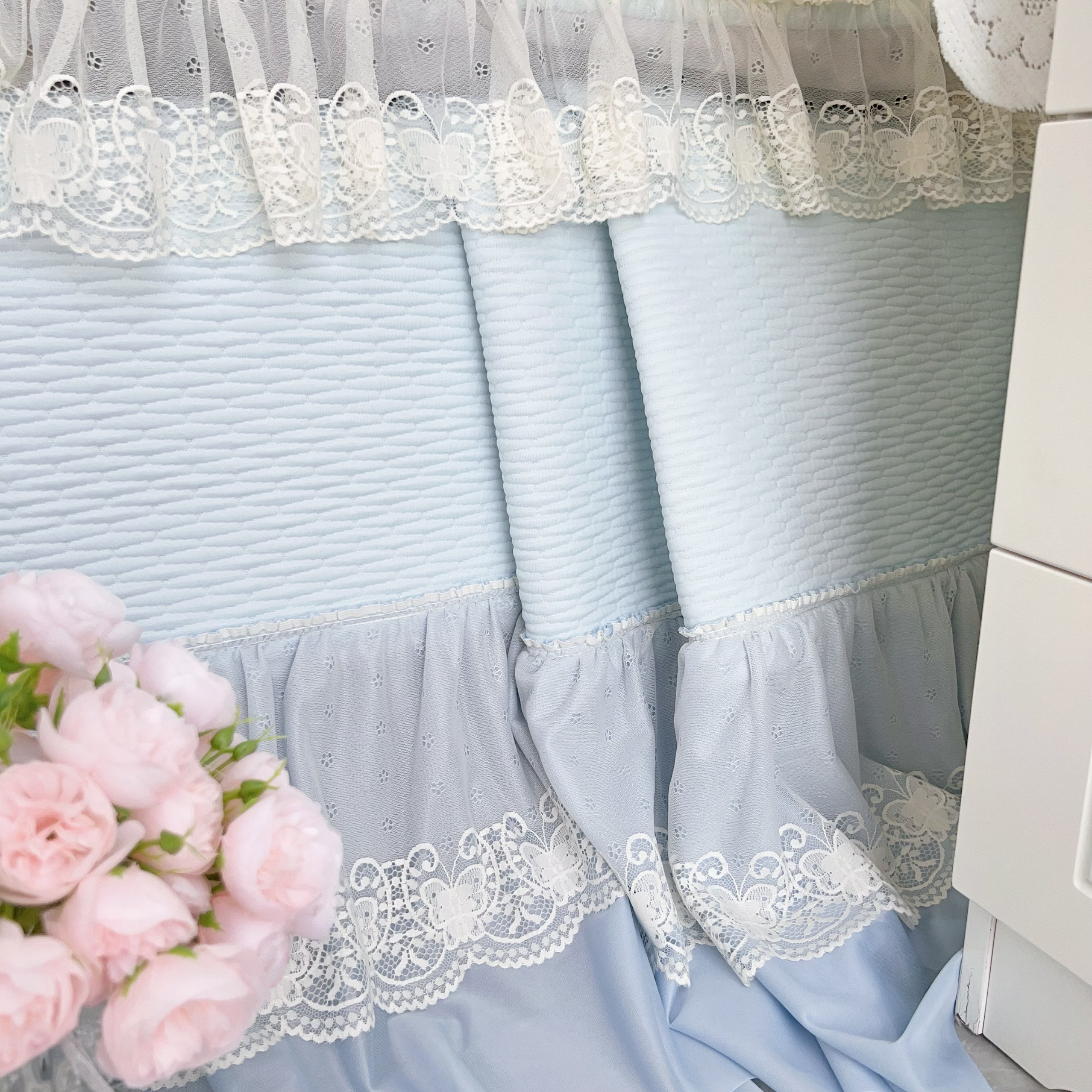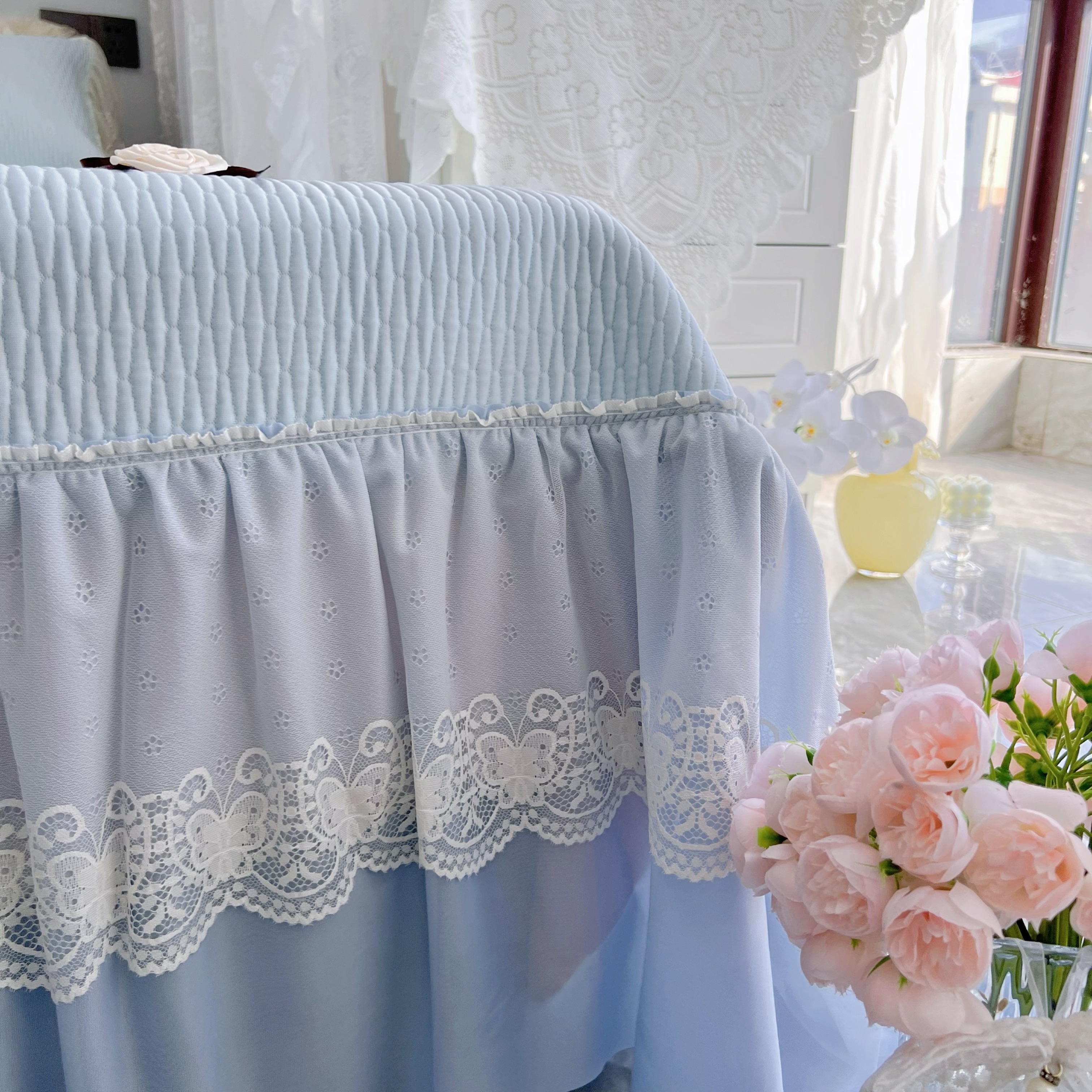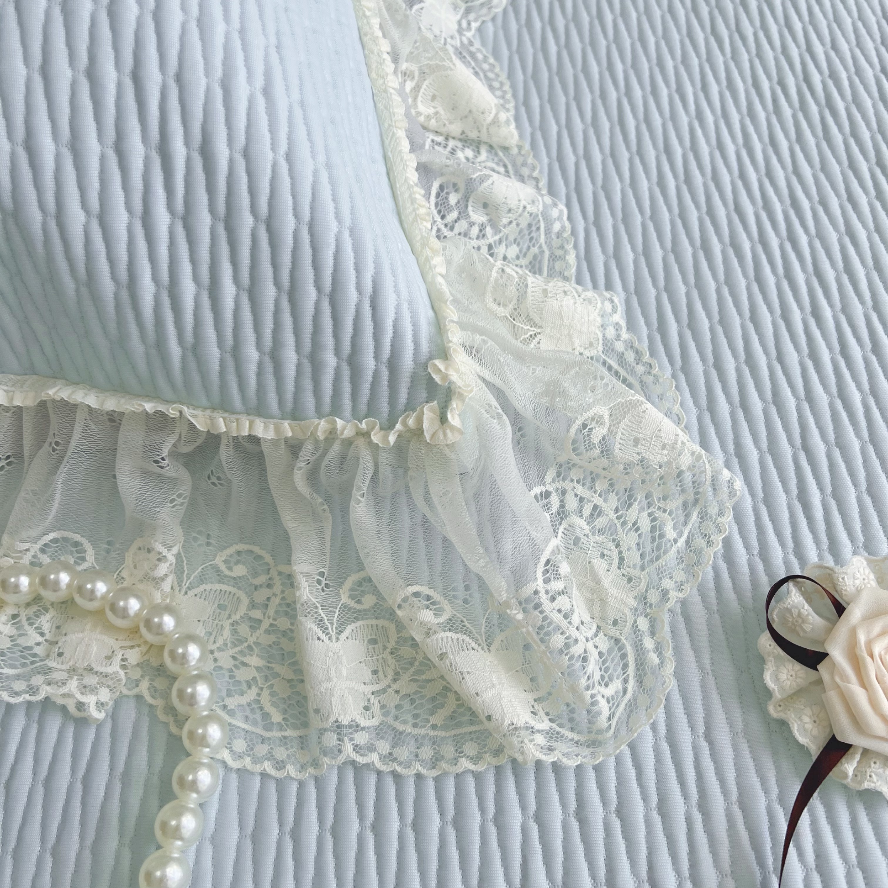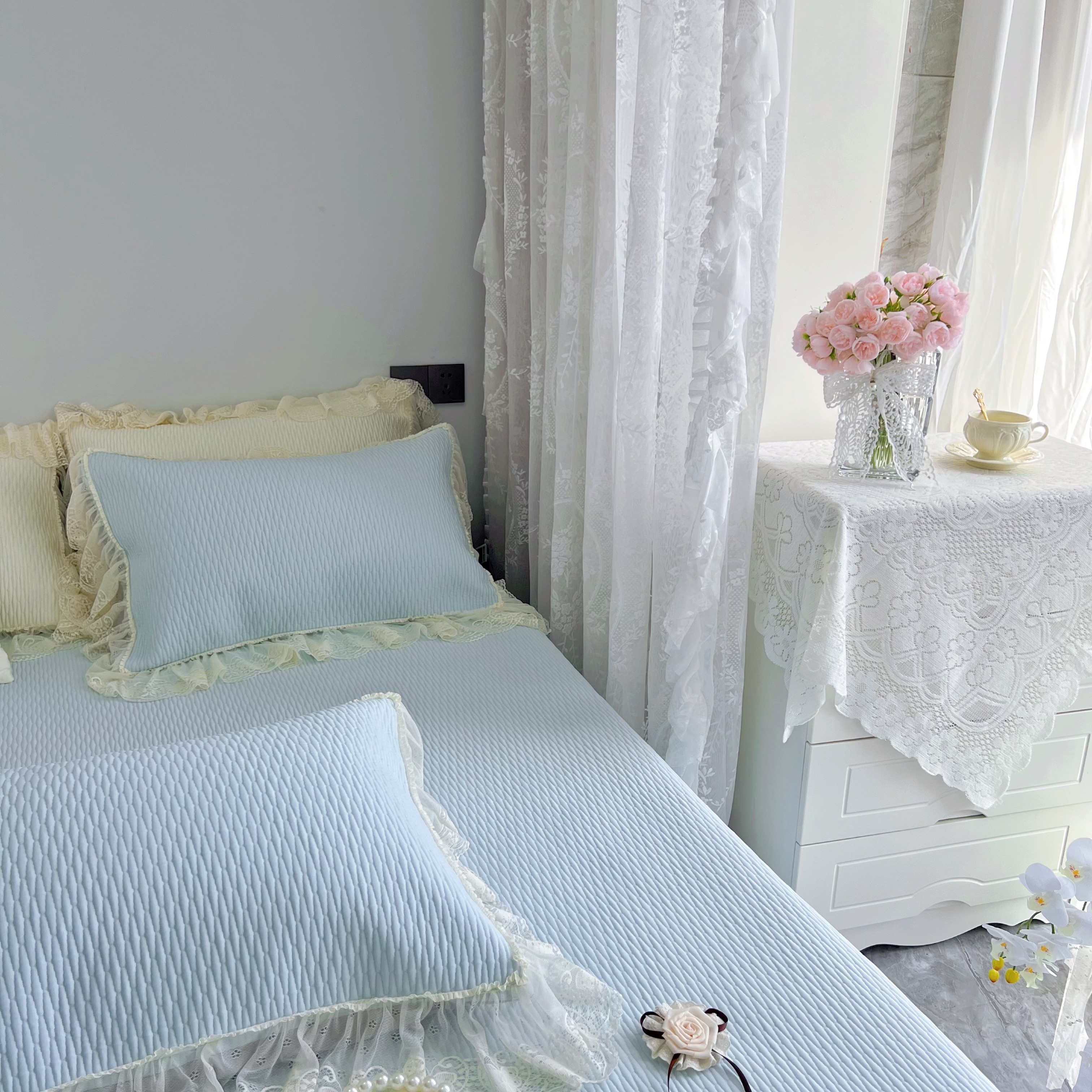 商品名称:恋尚羽 2026新款高分子PE凉泡泡大床裙凉感席波浪冰豆豆凉席席子三件套-系列 山茶可可 蓝色