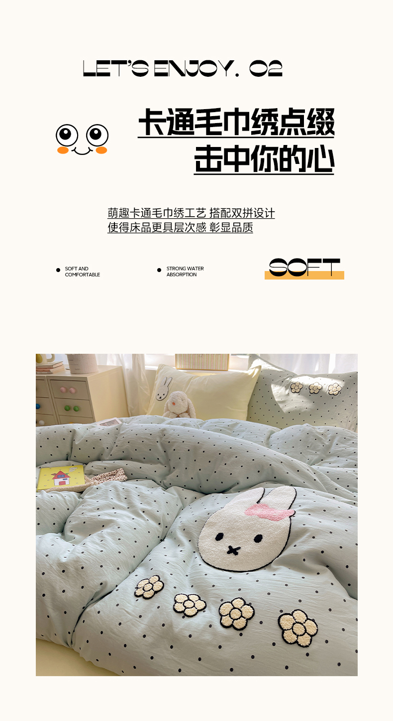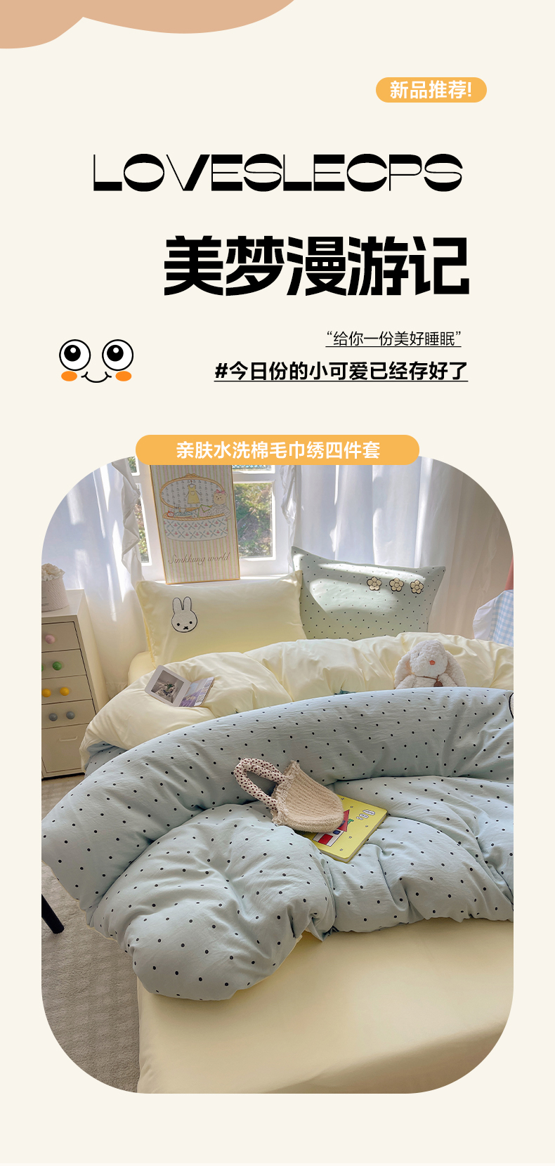 当前位置: 91家纺网 > 商品网购 > 床品套件 > 四件套 > 其它四件套 > 韩都家居 2026春夏新款亲肤舒适毛巾绣四件套(包含买家秀原图) 米菲兔