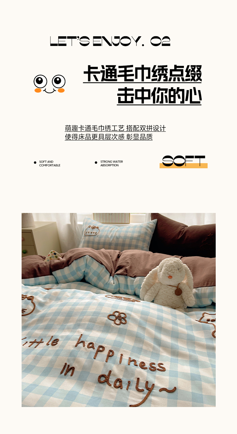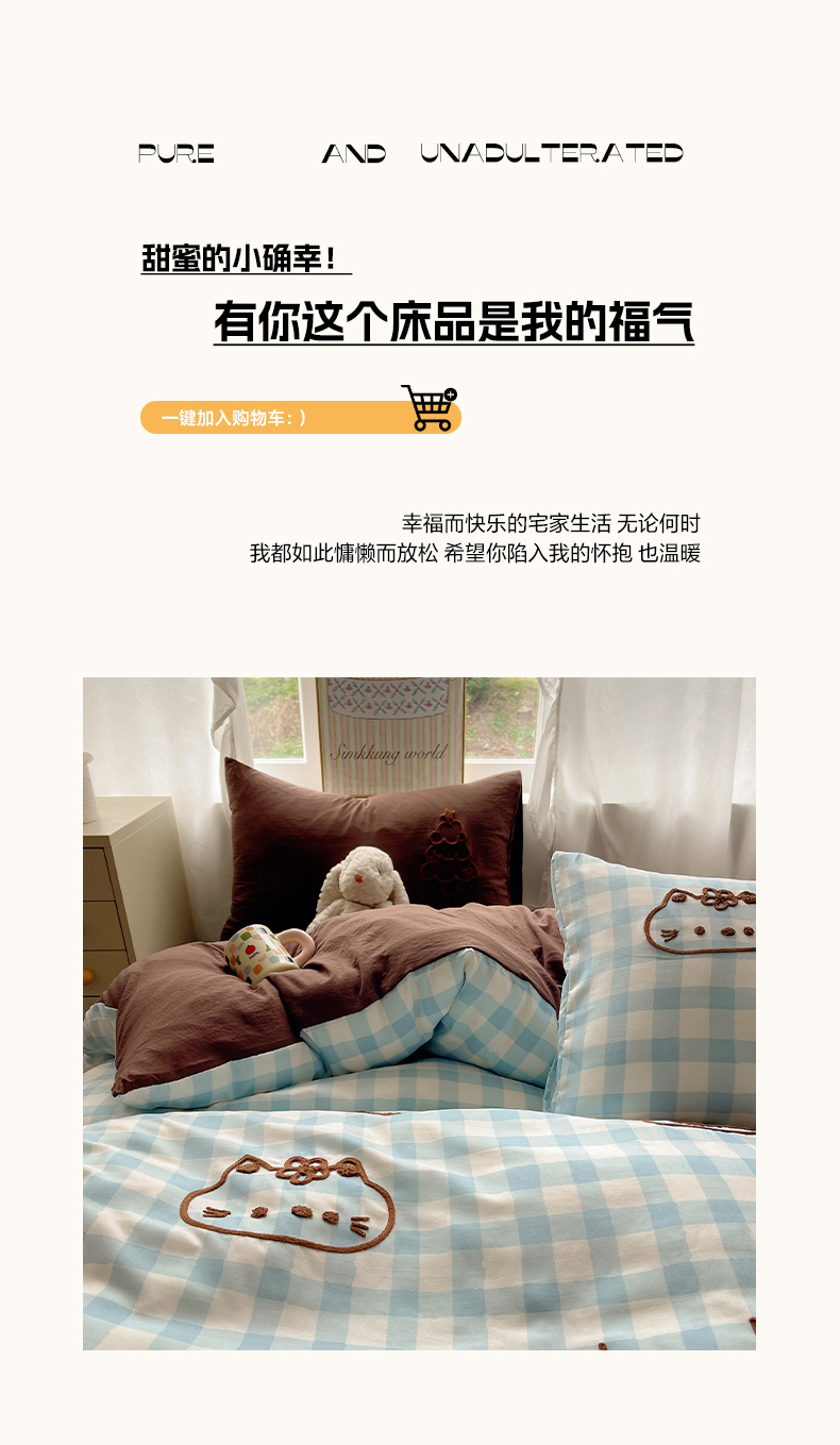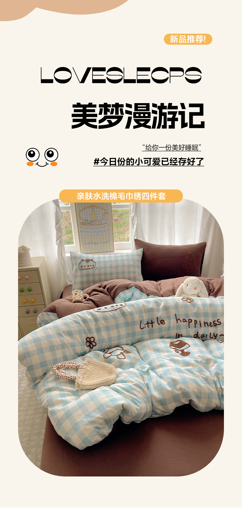 当前位置: 91家纺网 > 商品网购 > 床品套件 > 四件套 > 其它四件套 > 韩都家居 2026春夏新款亲肤舒适毛巾绣四件套(包含买家秀原图) 小确幸