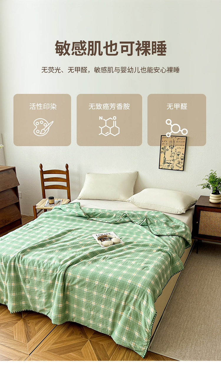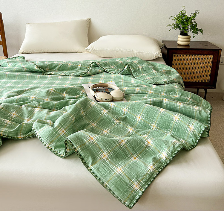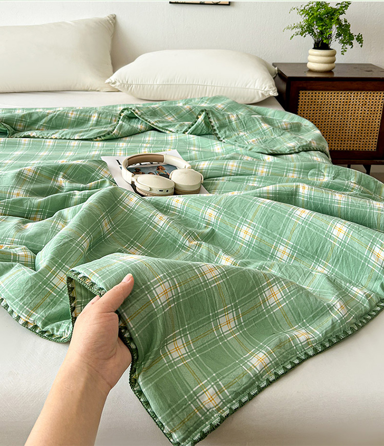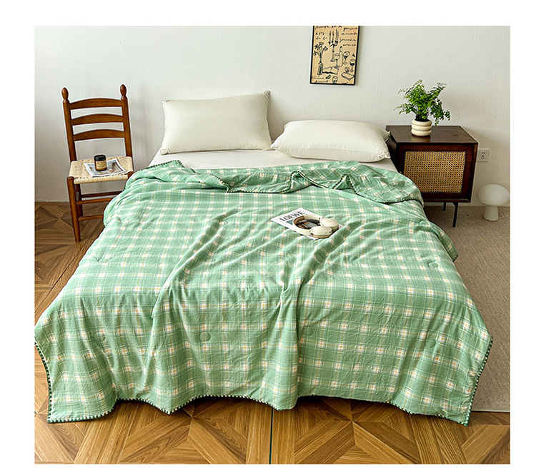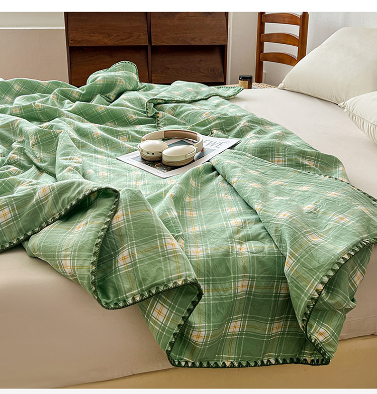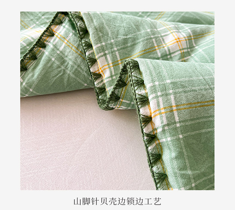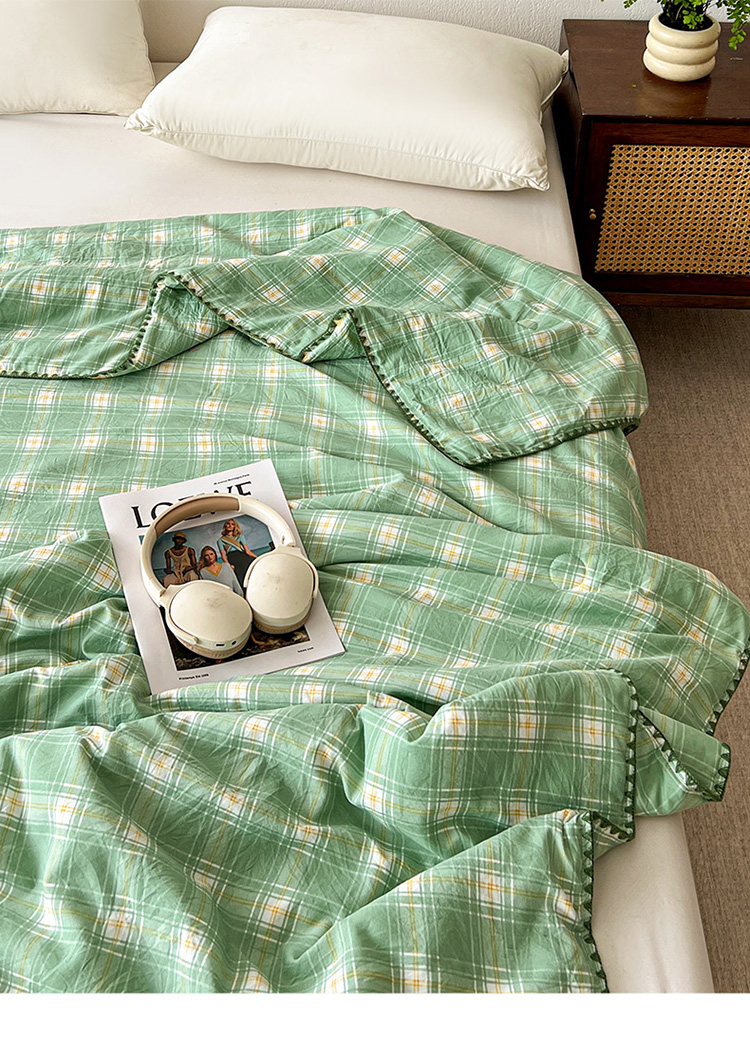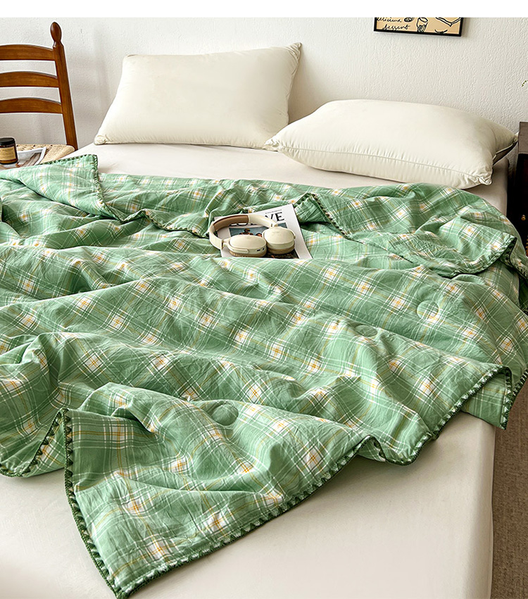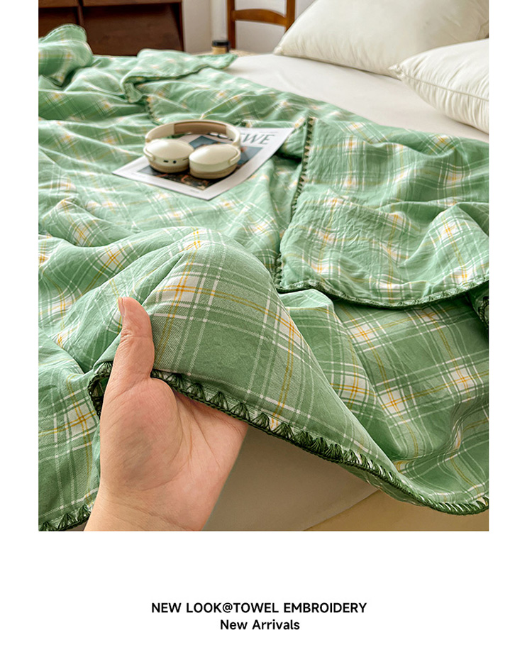 商品名称:逸林家纺2026新款水洗棉夏被无印风格子夏被空调被贝壳绣系列学生单/双人夏被 彩绿格
