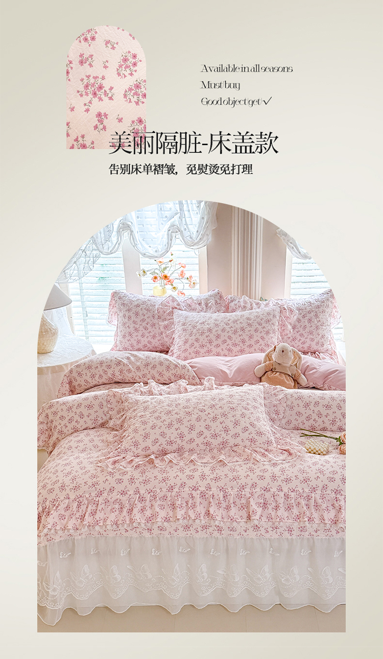 (总)苏米娜家纺2026春夏新款活性印花ins风小碎花软糯水洗棉床盖款四件套全棉纯棉花边款被套,春田绿 ,紫韵,兰黛 , 奶酪芝士 ,莫奈-粉