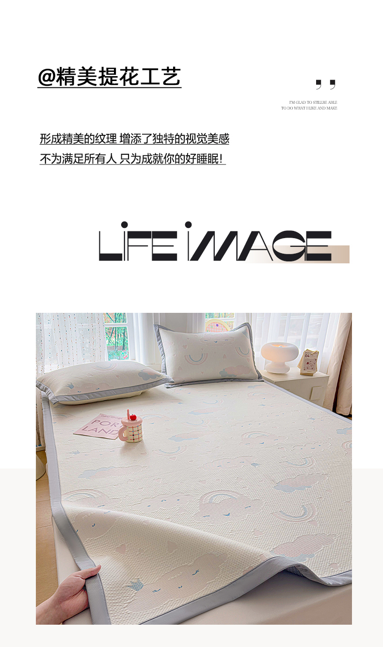 (总)小萌虎 2026年新款乙纶PE提花冰豆豆凉席床笠款卡通,草莓粉,彩虹粉,灰格,腊肠犬-咖,腊肠犬-蓝,小美熊,摇摇马-粉,摇摇马-蓝