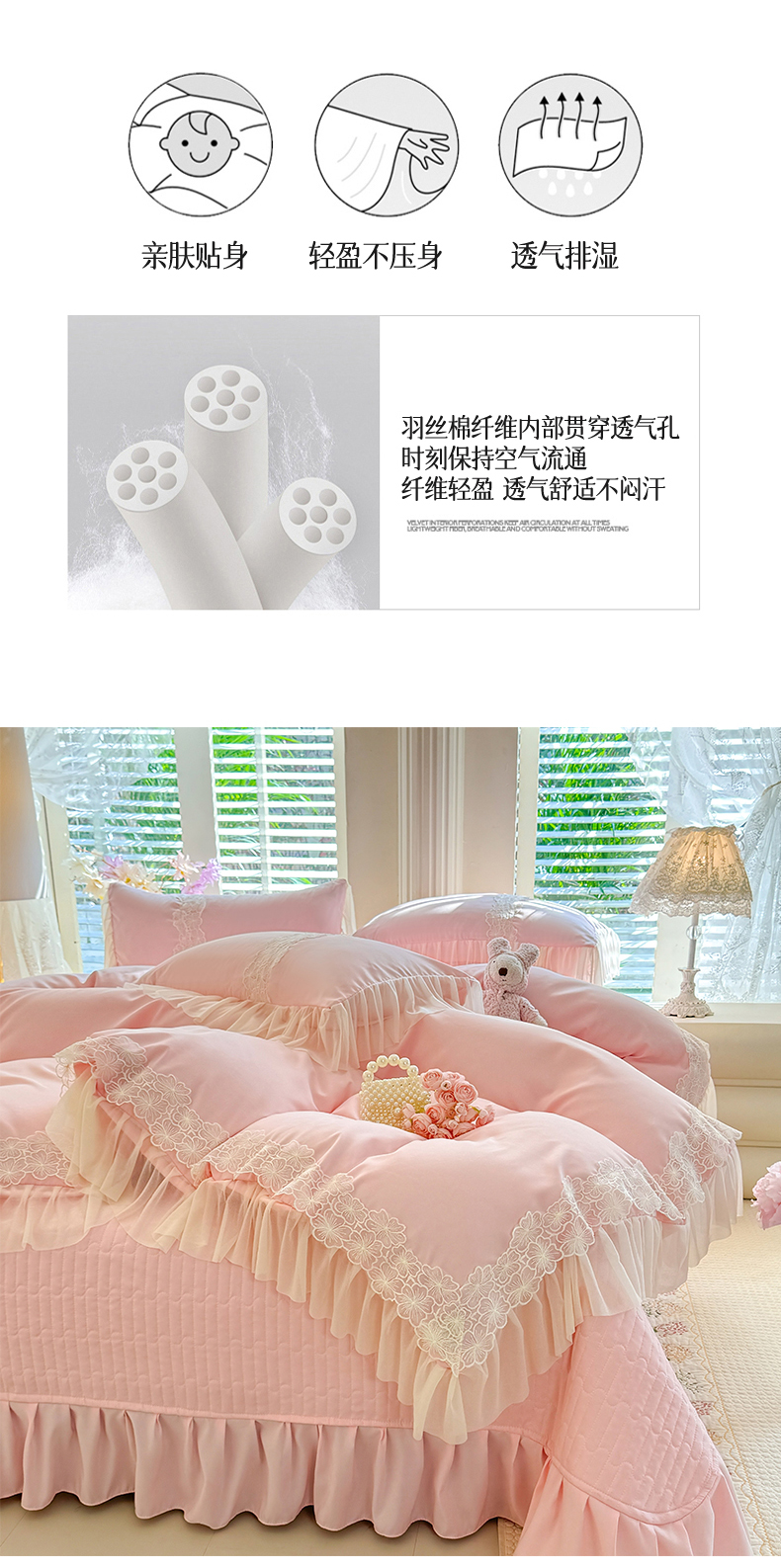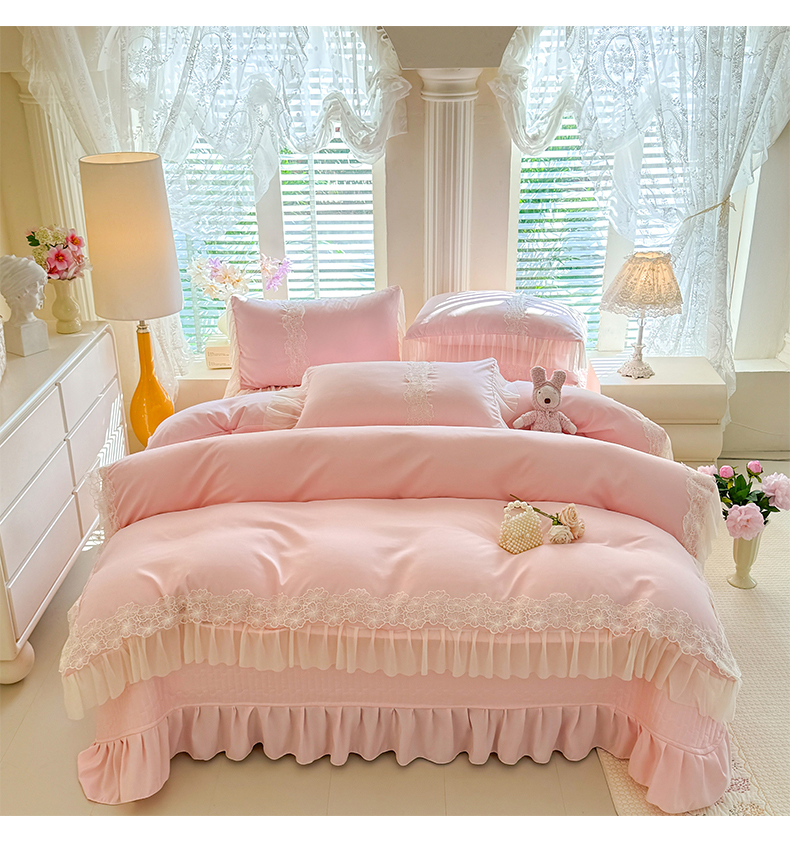 (总)唐人居 2026新款水洗棉花边床盖四件套-花影系列,花影-浅紫,花影-豆沙,花影-玫红,花影-暖橘,花影-苹果绿,花影-浅粉,花影-浅灰